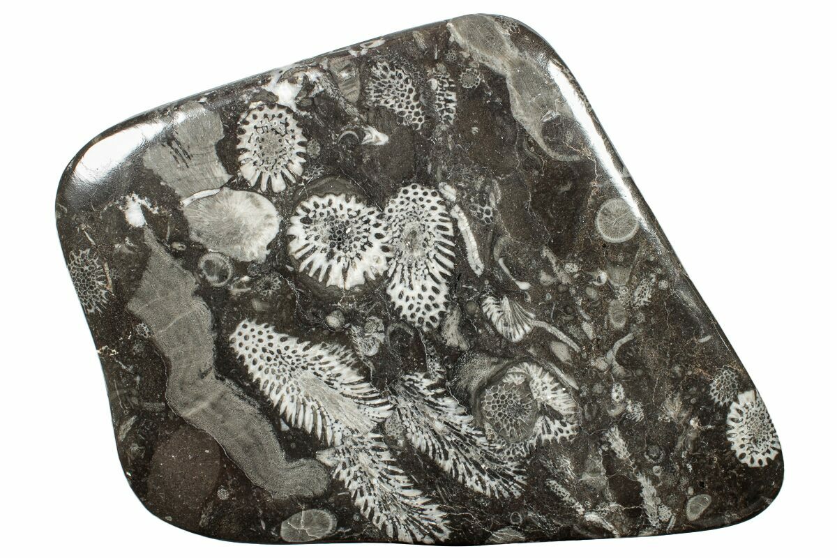 7.3" Polished Devonian Fossil Coral and Bryozoan Plate - Morocco