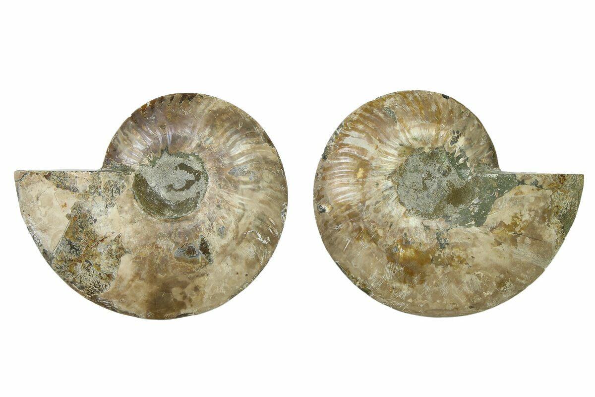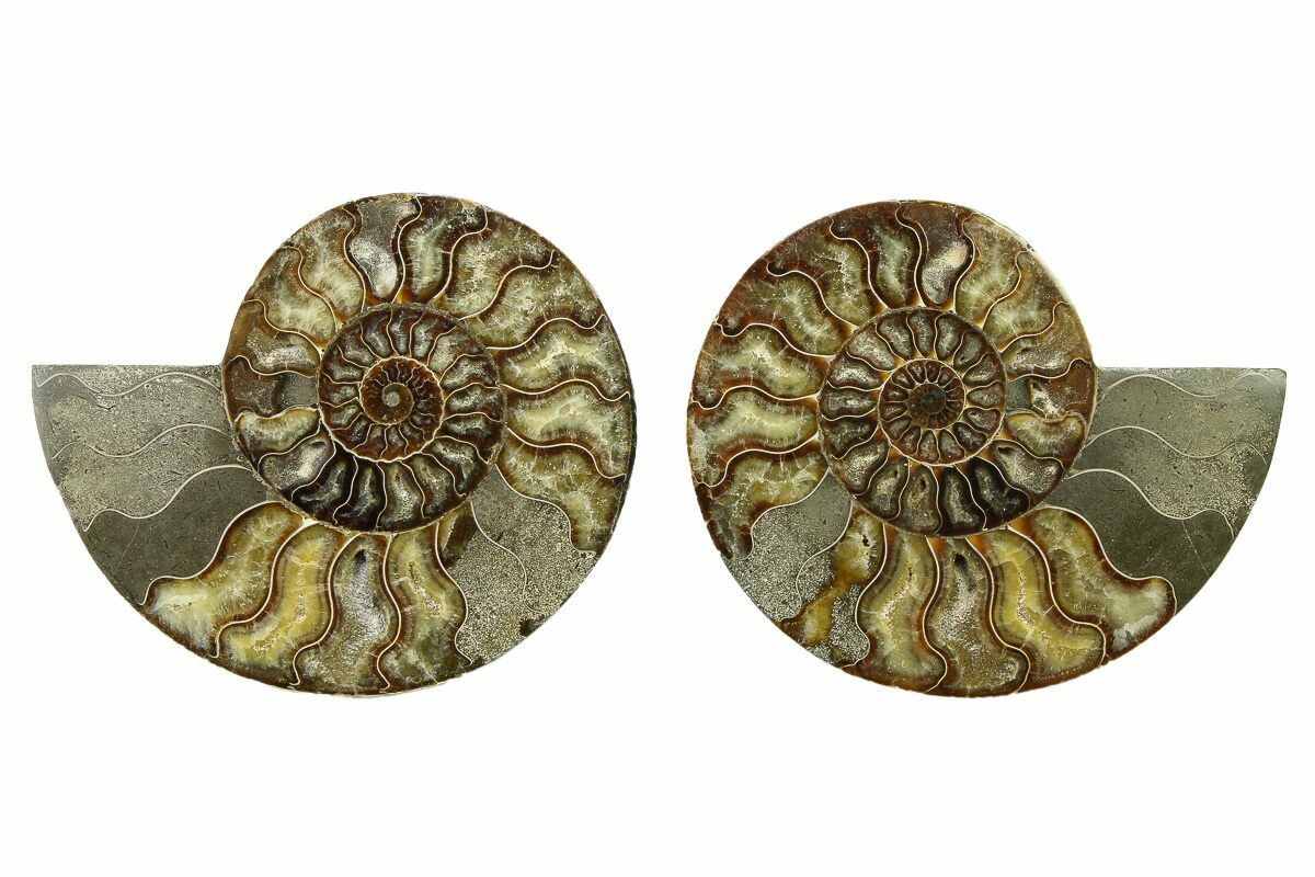 Both halves are included along with a pair of display stands. The center of the ammonite is a composite from another specimen.