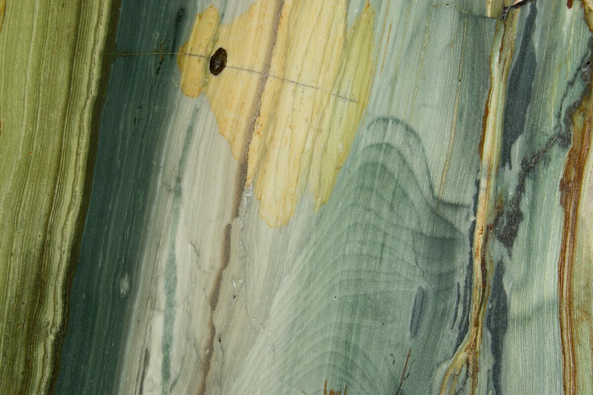 Gary Green Jasper, also referred to as petrified bog wood or Larsonite, is a form of petrified wood from a location near McDermitt, Oregon on the Nevada/Oregon border. It is believed to be wood covered by volcanic activity between 11-15 million years ago. The volcanic event covered this area in debris that deprived the plants of oxygen, halting the decay process. Minerals from the volcanic ash then acted as the replacement material for this petrification/mineralization, giving the wood these vibrant colors.