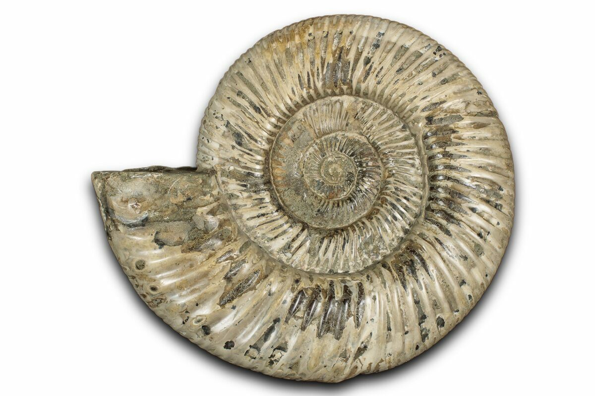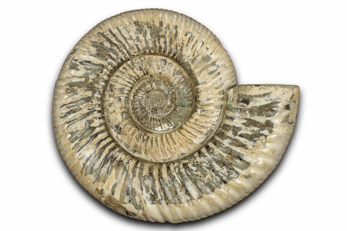 Ammonites were ancient marine cephalopods, similar to today's squids and octopuses, but with a defining feature: their distinctive, tightly coiled spiral shells. These shells, resembling those of modern nautiluses, served as both a protective home and a buoyancy aid, allowing ammonites to navigate the prehistoric seas with ease. First emerging around 240 million years ago in the Triassic Period, ammonites thrived for over 175 million years, adapting through numerous forms and sizes. As predatory creatures, they likely fed on smaller marine organisms, using their tentacles to capture prey. However, their long reign came to an end 65 million years ago at the close of the Cretaceous, coinciding with the mass extinction event that also eliminated the dinosaurs.