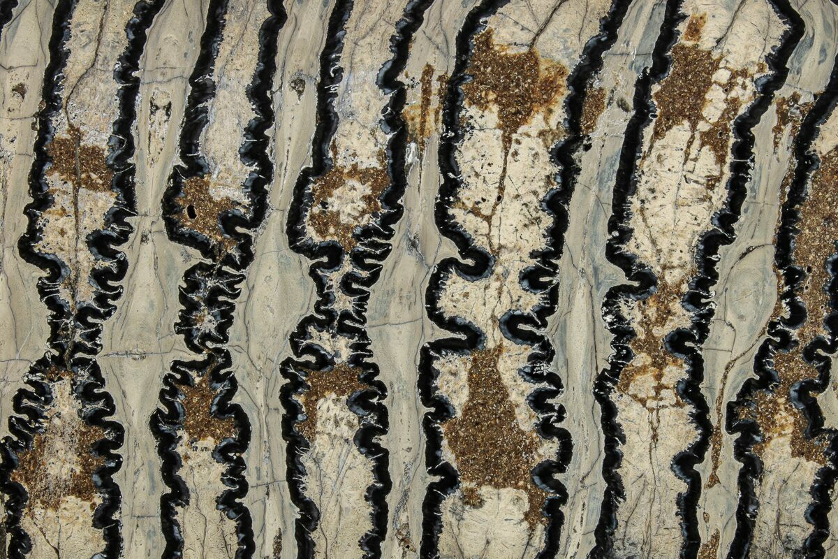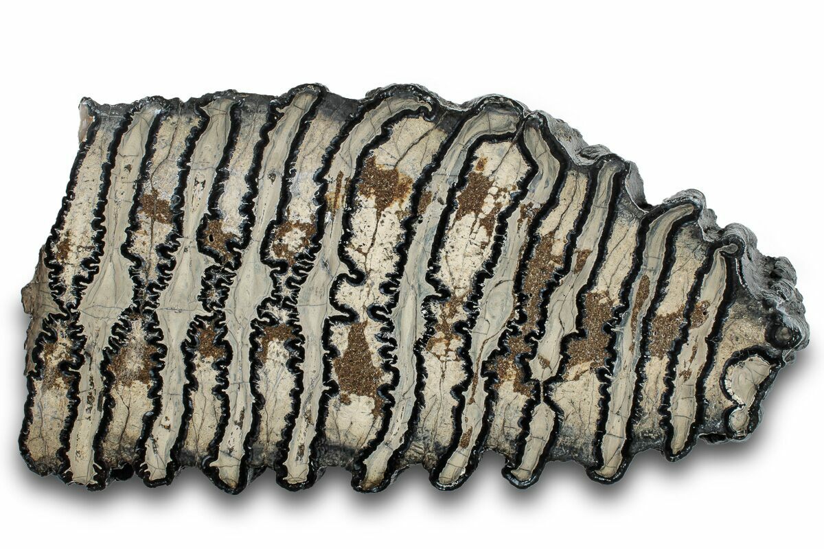 This is a 7.4" wide section of a Columbia Mammoth (Mammuthus columbi) molar collected from the coastal region of South Carolina. It has been sliced and highly polished to a glossy-finish on both sides. Really an interesting piece.