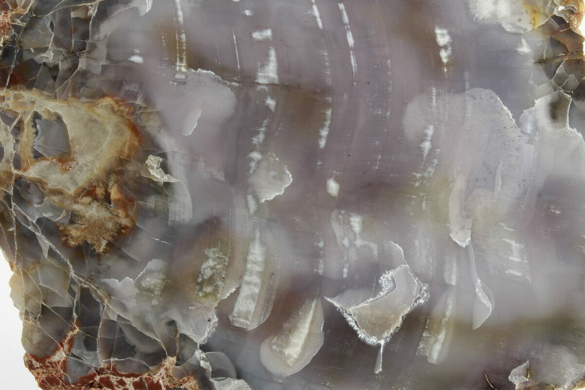 This is a brilliantly colored, 7.45" wide section of petrified wood (Araucarioxylon) from Arizona. One side of the petrified has been polished to a glossy finish, while the exterior surface has a natural texture.