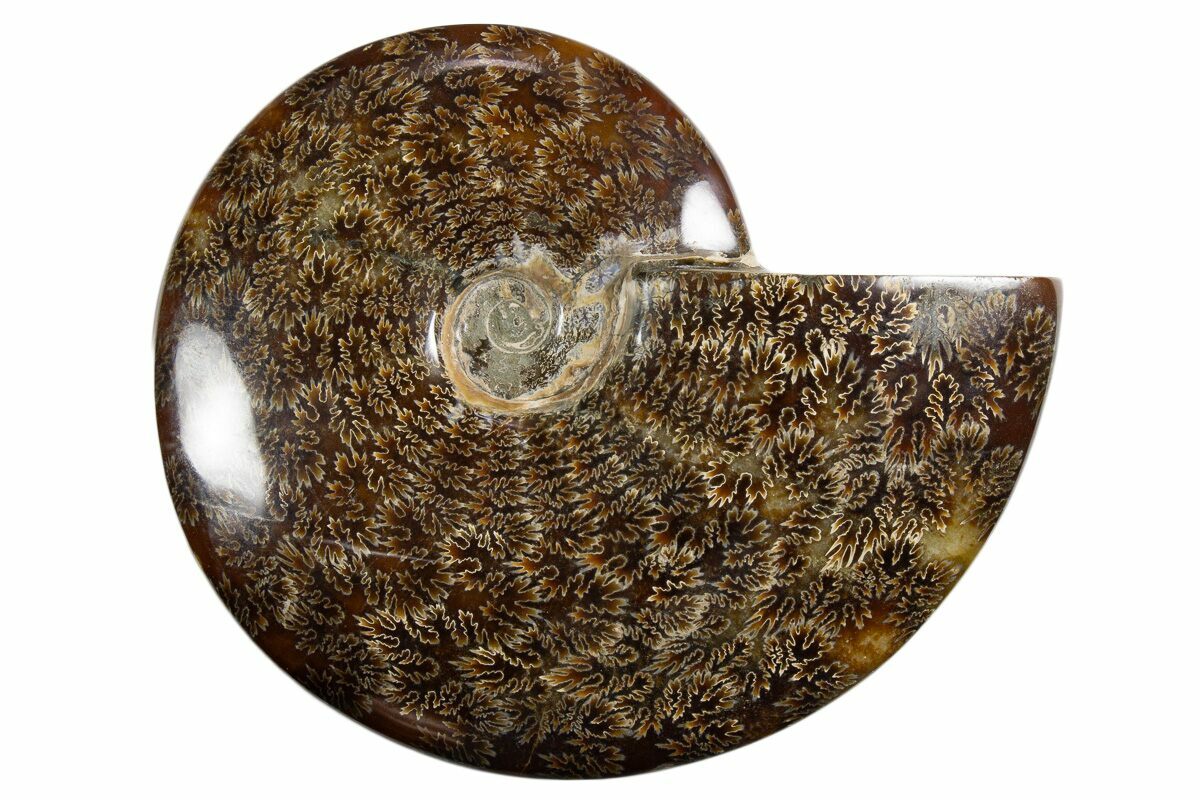 This is a 7.6" wide polished ammonite of the genus Cleoniceras, collected in Madagascar. It is absolutely gorgeous, displaying a distinctive "oak-leaf" suture pattern on the surface. This 110 million year old ammonite is truly a natural work of art, displaying beautifully on the included acrylic stand.