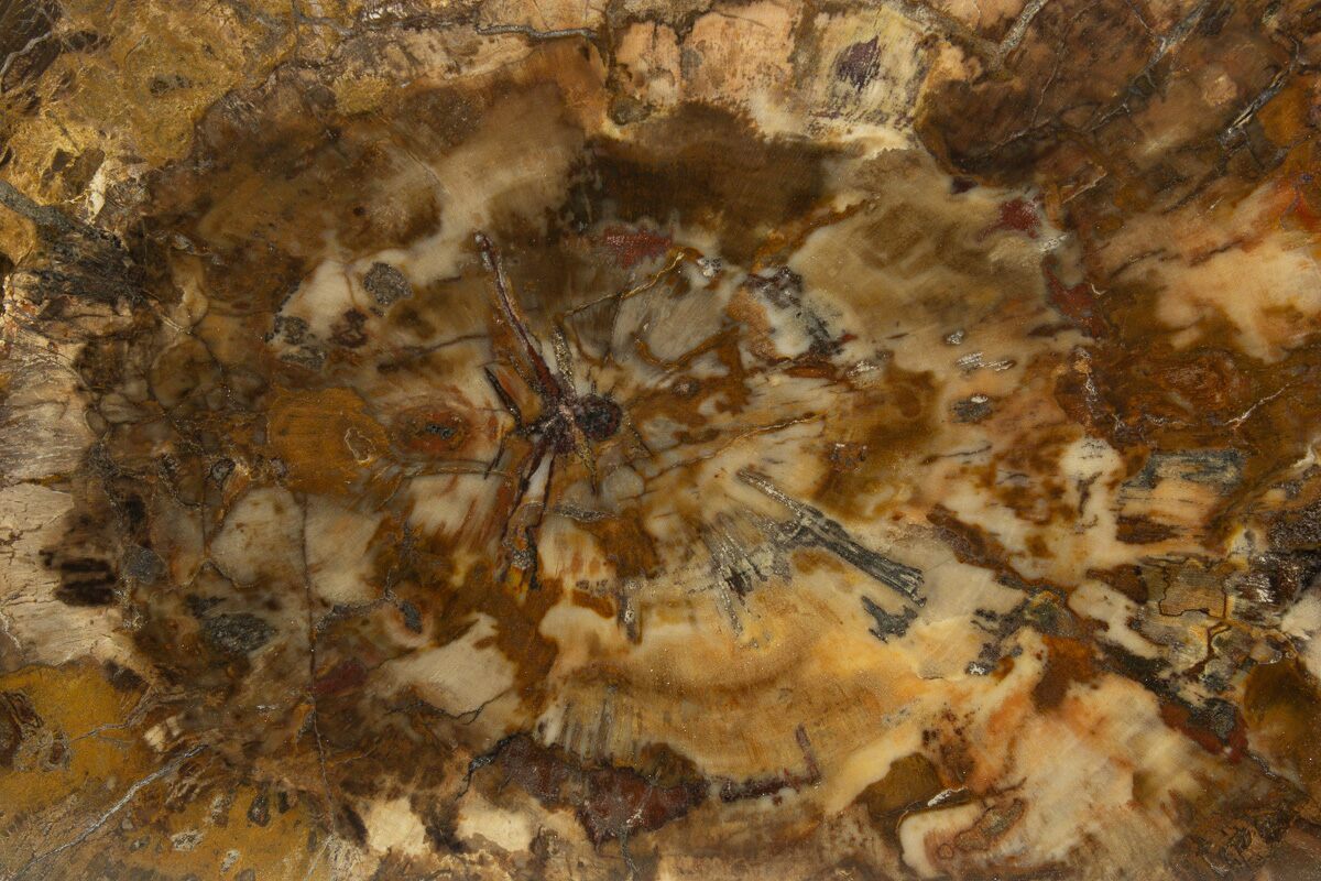 Madagascar petrified wood comes primarily from extensive Triassic-aged deposits in the Mahajanga Basin of northwestern Madagascar, where ancient conifer forests—often attributed to species related to Araucarioxylon—were buried by volcanic ash and floodplain sediments roughly 225–240 million years ago. Over immense spans of time, silica-rich fluids percolated through these sediments, replacing the cellular structure of the wood with chalcedony, jasper, agate, and quartz while preserving growth rings, bark textures, and even microscopic details. The region’s unique geochemistry—especially its iron, manganese, and occasionally copper content—produces the vivid palette Madagascar petrified wood is famous for, including deep brick reds, golden yellows, smoky blacks, and pastel pinks. Many logs are found fully silicified and naturally fractured into large, rounded segments that local artisans cut into slabs, spheres, eggs, and freeforms. These deposits stretch across arid badlands where erosion steadily exposes new material, making Madagascar one of the world’s premier sources of highly colorful, beautifully patterned fossil wood.