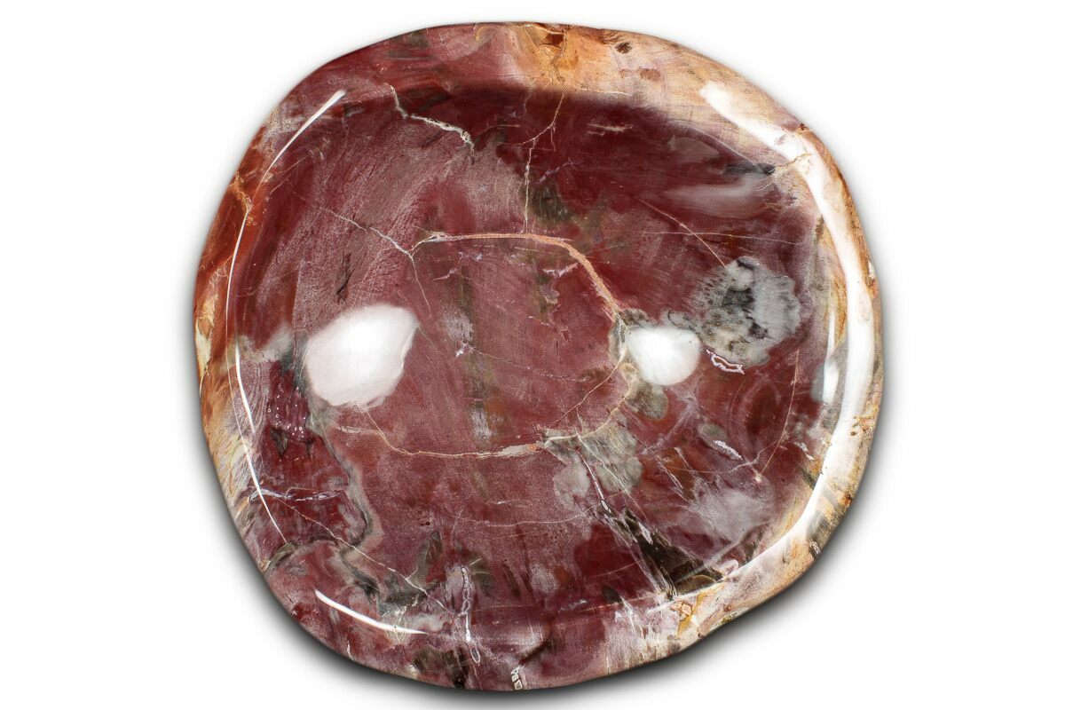 This is a beautiful 7.7" wide bowl carved from a single log of petrified Araucaria wood collected near Ambilobe, Madagascar. Dating to the Early Triassic—about 220 million years ago, near the dawn of the dinosaurs—this richly colored piece makes a striking natural centerpiece.