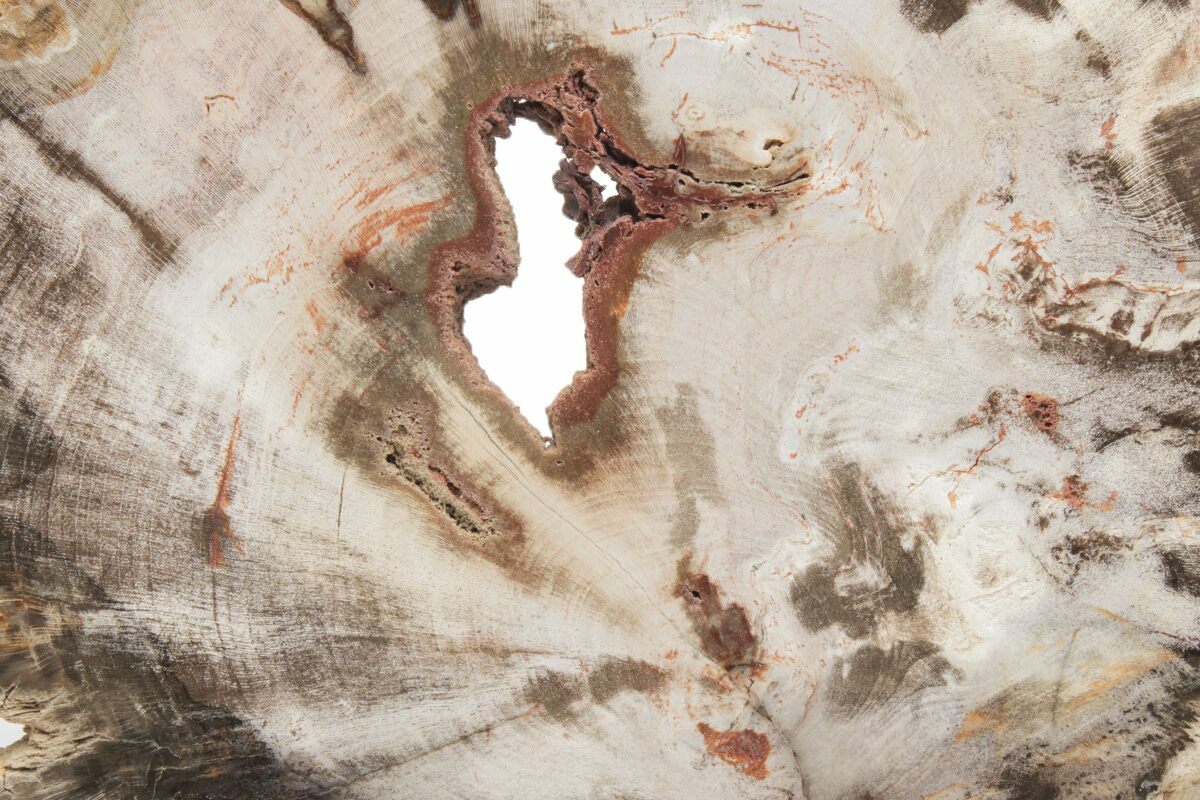 Petrified wood is the name given to wood that has been turned into stone (fossilized) through the process of permineralization. In this process, all of the organic matter becomes replaced by minerals, while much of the original structure, such as tree rings, is retained. For this to happen, the wood needs to be buried in an environment low in oxygen to prevent decomposition and with flowing, mineral-laden water, so minerals may replace structures. The coloration is caused by various minerals/impurities present in the water during fossilization. For example, red colors in many cases can be attributed to iron compounds, greens due to copper, and so on.