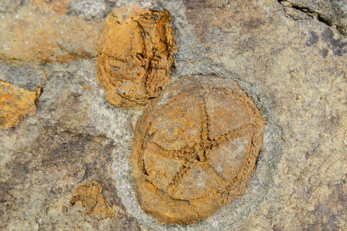 Edrioasteroids were small organisms from a few millimeters to a couple centimeters wide. They look like a tiny cushion attached to a substrate. The mouth was in the center of the theca (body) and from it, five ridges radiate out in a pentaradial pattern. These ambulacra channel food along the body to the mouth. There is little fossil evidence of how this was done, but by looking at modern echinoderms, it is likely Edrioasteroids had cilia or tube feet along the ambulacra that moved the food to the mouth. The ambulacra radiate out from the mouth in either straight lines, or curving to form a whorl. Usually they all curve in the same direction, but in a few species they curve in different directions.