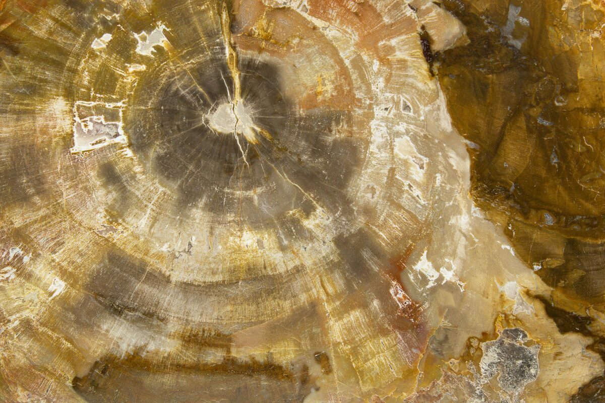 Madagascar petrified wood comes primarily from extensive Triassic-aged deposits in the Mahajanga Basin of northwestern Madagascar, where ancient conifer forests—often attributed to species related to Araucarioxylon—were buried by volcanic ash and floodplain sediments roughly 225–240 million years ago. Over immense spans of time, silica-rich fluids percolated through these sediments, replacing the cellular structure of the wood with chalcedony, jasper, agate, and quartz while preserving growth rings, bark textures, and even microscopic details. The region’s unique geochemistry—especially its iron, manganese, and occasionally copper content—produces the vivid palette Madagascar petrified wood is famous for, including deep brick reds, golden yellows, smoky blacks, and pastel pinks. Many logs are found fully silicified and naturally fractured into large, rounded segments that local artisans cut into slabs, spheres, eggs, and freeforms. These deposits stretch across arid badlands where erosion steadily exposes new material, making Madagascar one of the world’s premier sources of highly colorful, beautifully patterned fossil wood.