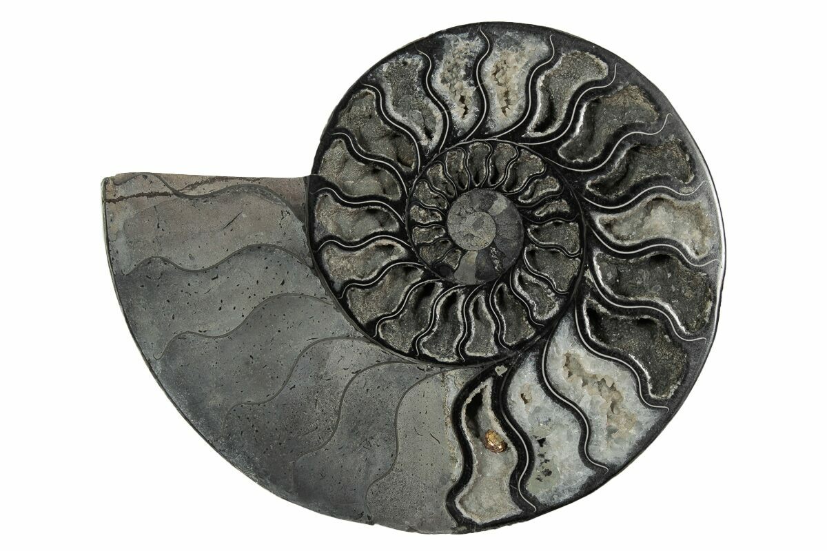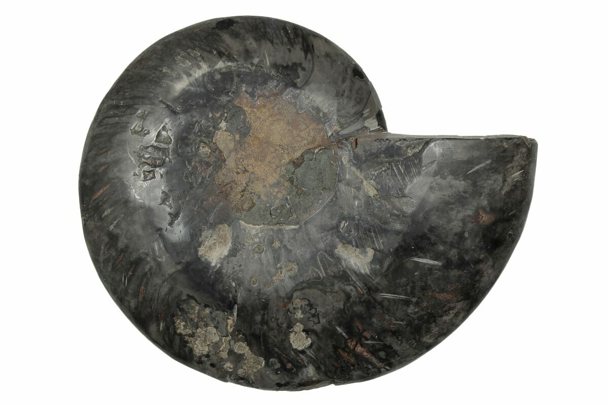 7.9" Cut & Polished Ammonite Fossil (Half) - Unusual Black Color