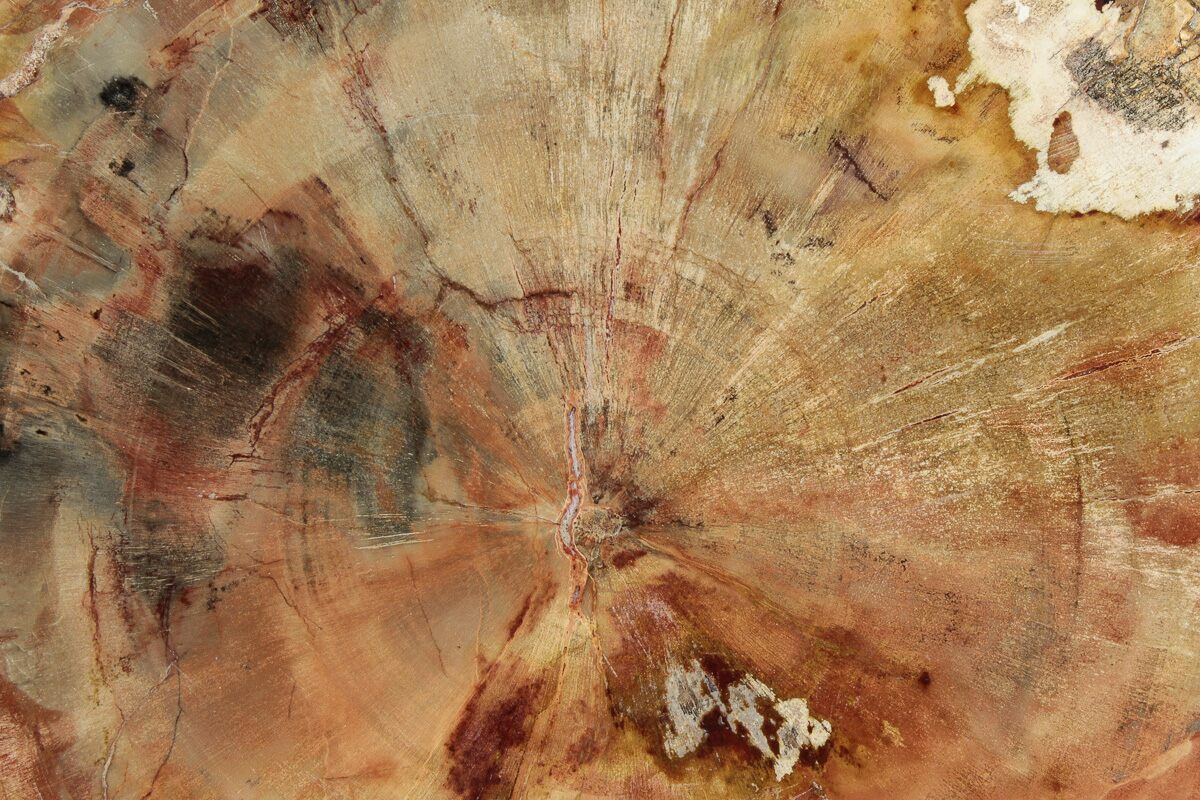 This is a 7" wide round of petrified wood (Araucaria) from Ambilobe, Madagascar. Araucaria is a coniferous tree in the family that includes the modern Monkey Puzzle tree. This 220 million year old petrified wood has been sliced and polished on both sides, allowing the stunning inner wood detail and fantastic coloration to easily be seen.
