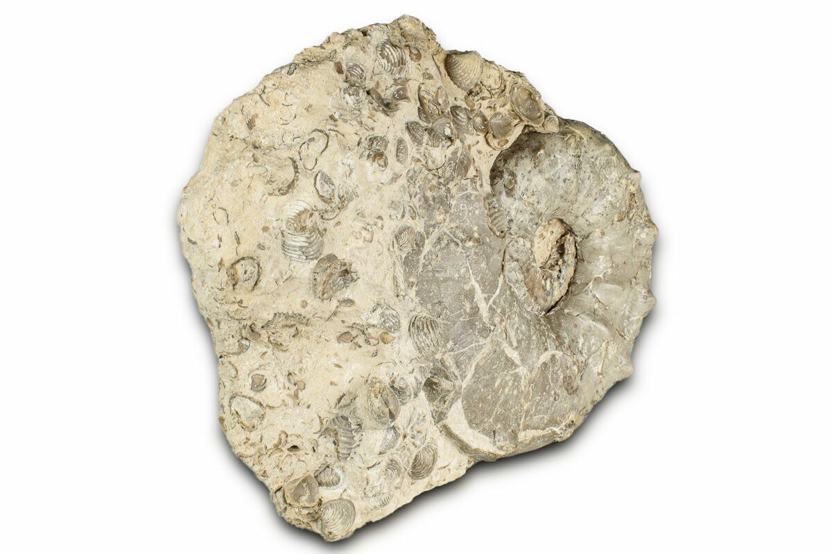7" Cretaceous Ammonite (Mammites) Fossil with Brachiopods - Morocco