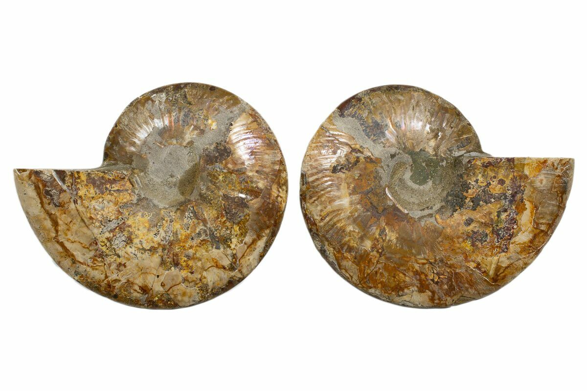 Both halves are included along with a pair of display stands. The center of the ammonite is a composite from another specimen.