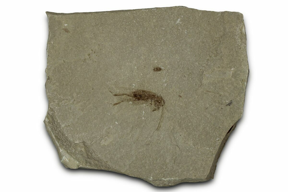This is a very nice .7" long fossil cricket (order Orthoptera) that was collected from the Green River Formation of Utah. While this formation is best known for well-preserved fossil fish found in Wyoming, other sections of the formation contain a very diverse insect fauna.