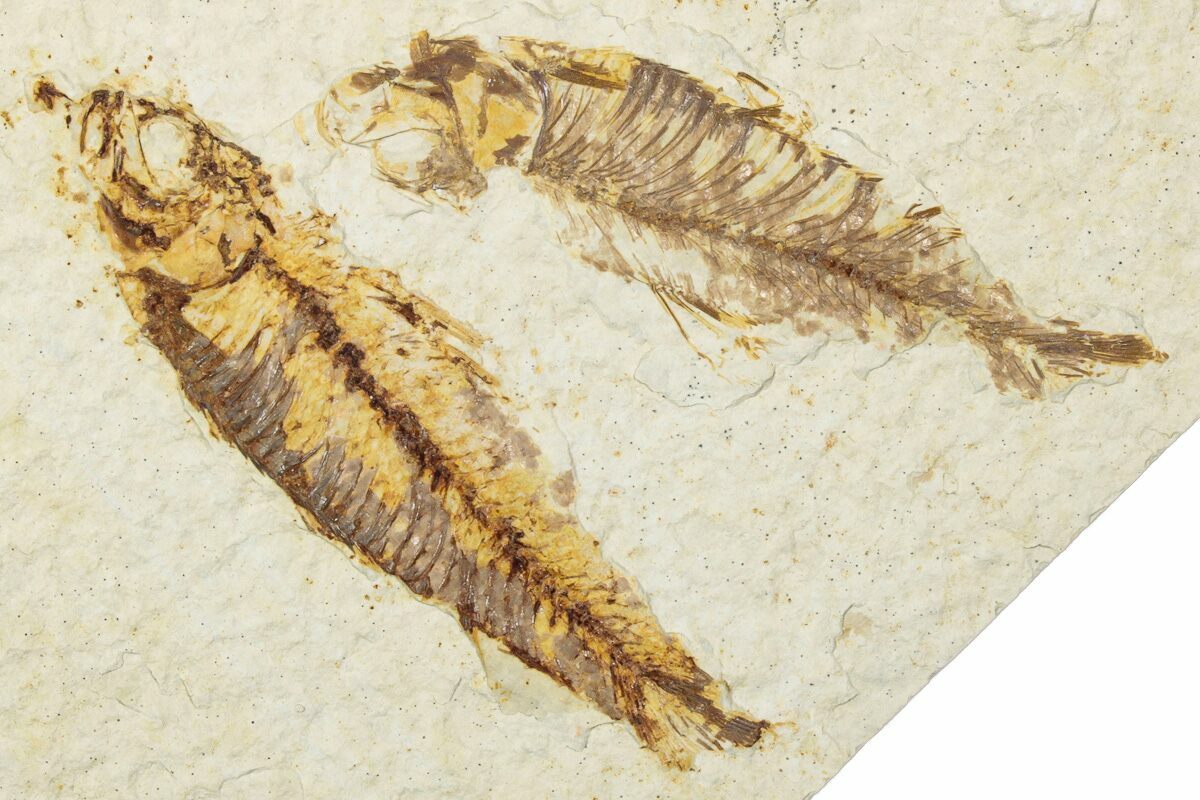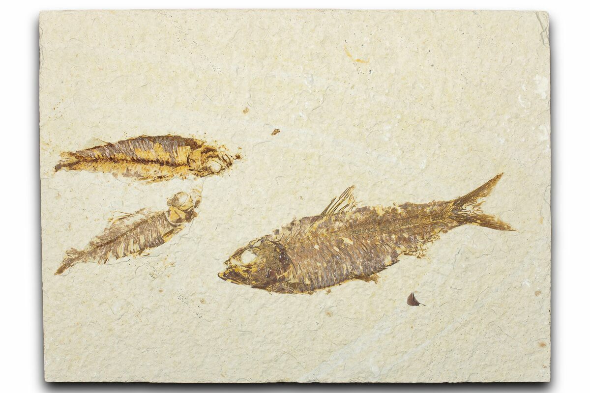 7" Limestone with Three Fossil Fish (Knightia) - Wyoming