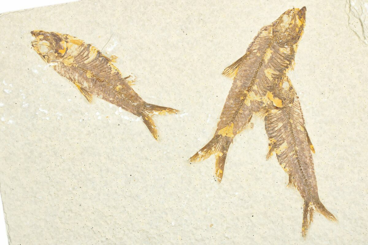 7" Limestone with Three Fossil Fish (Knightia) - Wyoming