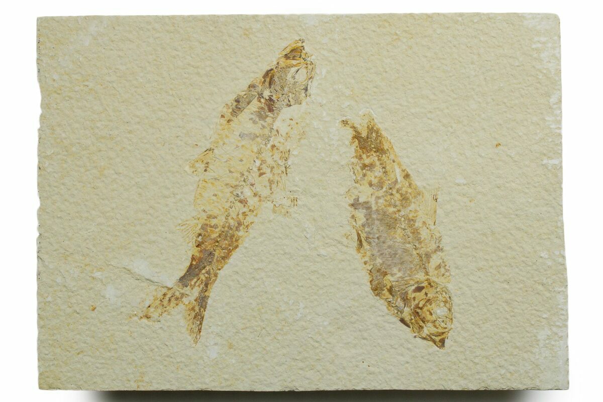 7" Limestone with Two Fossil Fish (Knightia) - Wyoming