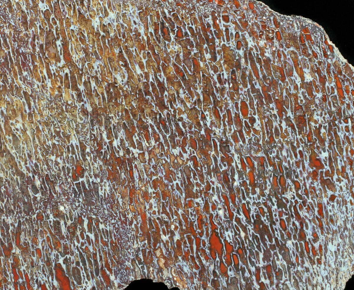 It comes from the Morrison formation of Colorado and is collected from our partner private quarry. The agatized bone is either found as fragments on the surface from bones or partial bones that have long since been destroyed by exposure to the elements, or as broken and tumbled chunks in event layers of the quarry. It could have come from any of a number of dinosaurs from this formation, though sometimes based on cell size and outer appearance the type can be narrowed down.