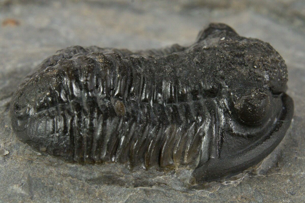 This is a detailed, .70" long specimen of the proetid trilobite, Gerastos, collected from Issoumour, Morocco. This specimen has some significant shell restoration, hence the bargain price.