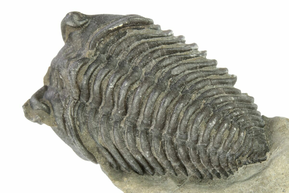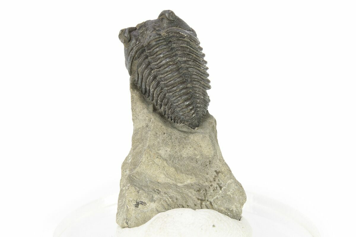 This is a .70" long specimen of Lemureops kilbeyi (Adrain 2009) from the Fillmore Formation of Utah. This species was described in 2009 based on pieces, but to my knowledge the examples we are offering are the first to be sold commercially. It comes from a new lease we started digging this spring, which is lower in the Fillmore Formation (Carolinites nevadensis Zone) than has been previously dug commercially.