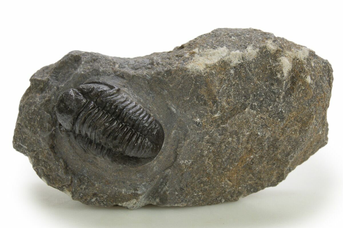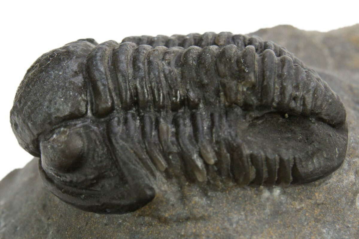 1This is a detailed, .75" long specimen of the proetid trilobite, Gerastos, collected from Issoumour, Morocco.