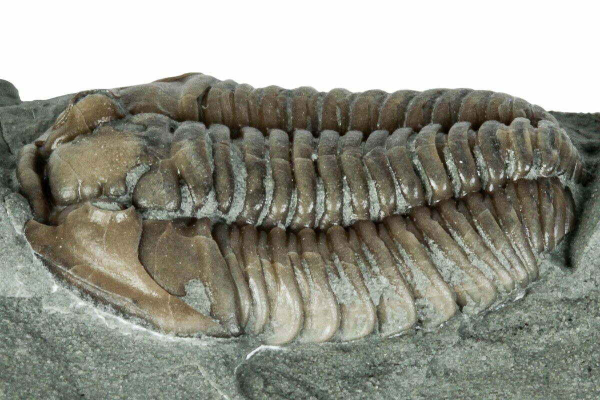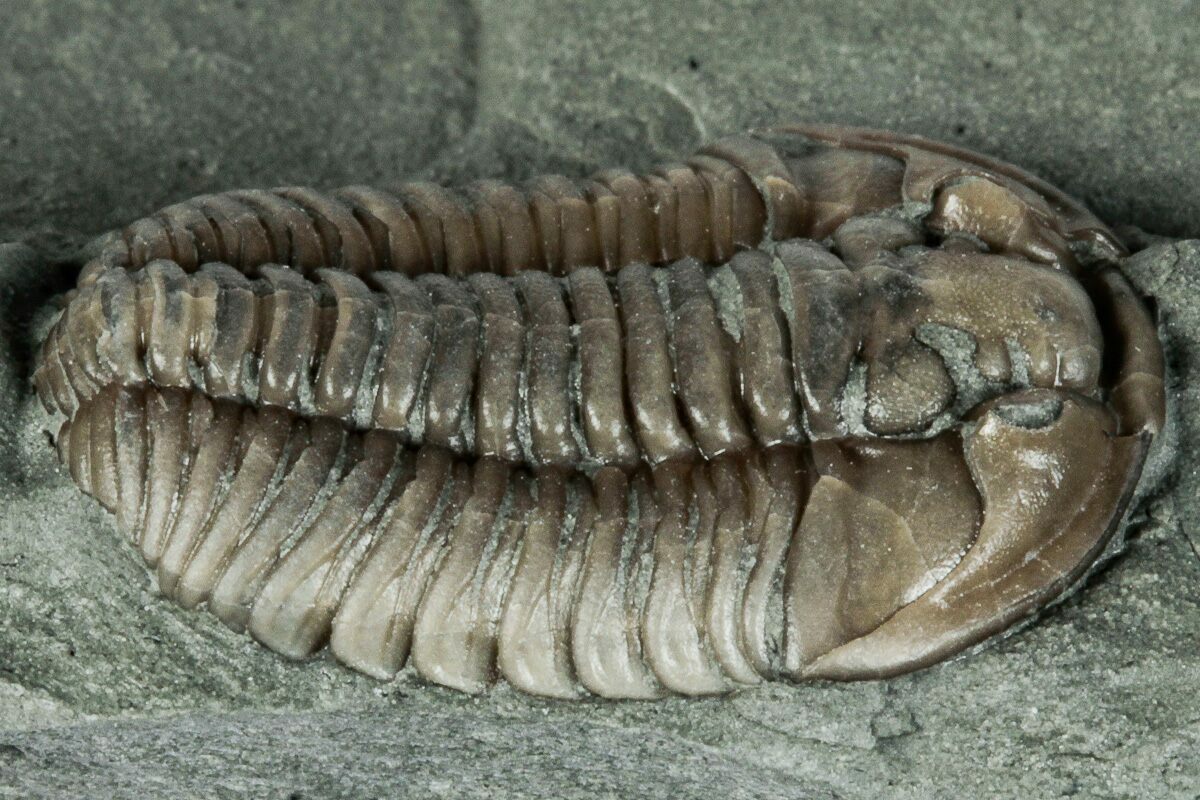 Flexicalymene is often found enrolled, seemingly to protect its softer underside from threats on a sea floor teeming with ancient life and increasingly complex predators. Sealing itself inside the hard carapace may be a protective maneuver, or it may simply be the pose of death.