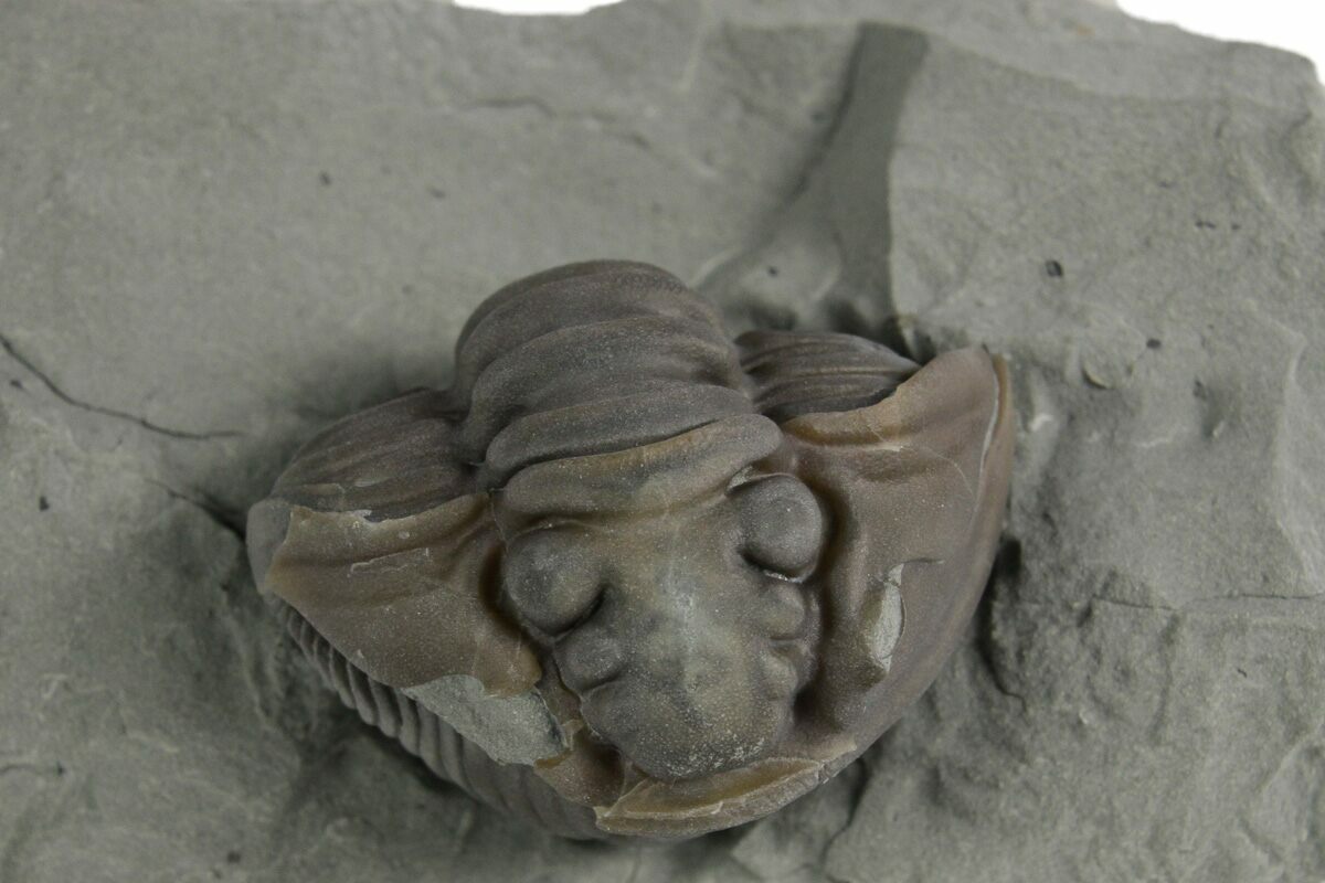 Flexicalymene is often found enrolled, seemingly to protect its softer underside from threats on a sea floor teeming with ancient life and increasingly complex predators. Sealing itself inside the hard carapace may be a protective maneuver, or it may simply be the pose of death.