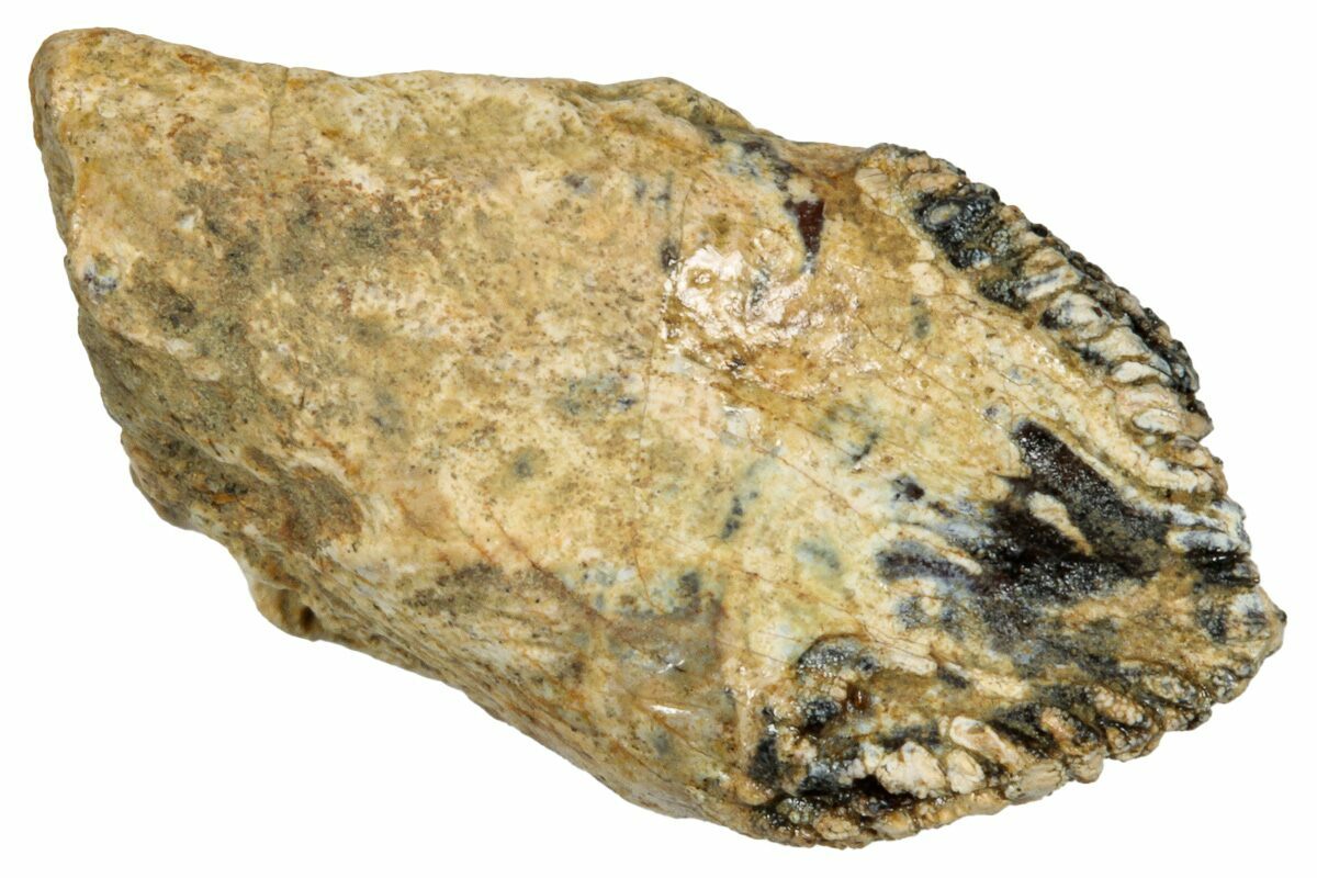 This tooth exhibits relatively little wear to the feeding surface and retains much of its root. Meaning it was likely in the mouth of the dinosaur when it died.