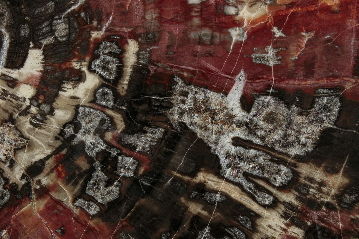 Petrified wood is the name given to wood that has been turned into stone (fossilized) through the process of permineralization. In this process, all of the organic matter becomes replaced by minerals, while much of the original structure, such as tree rings, is retained. For this to happen, the wood needs to be buried in an environment low in oxygen to prevent decomposition and with flowing, mineral-laden water, so minerals may replace structures. The coloration is caused by various minerals/impurities present in the water during fossilization. For example, red colors in many cases can be attributed to iron compounds, greens due to copper, and so on.