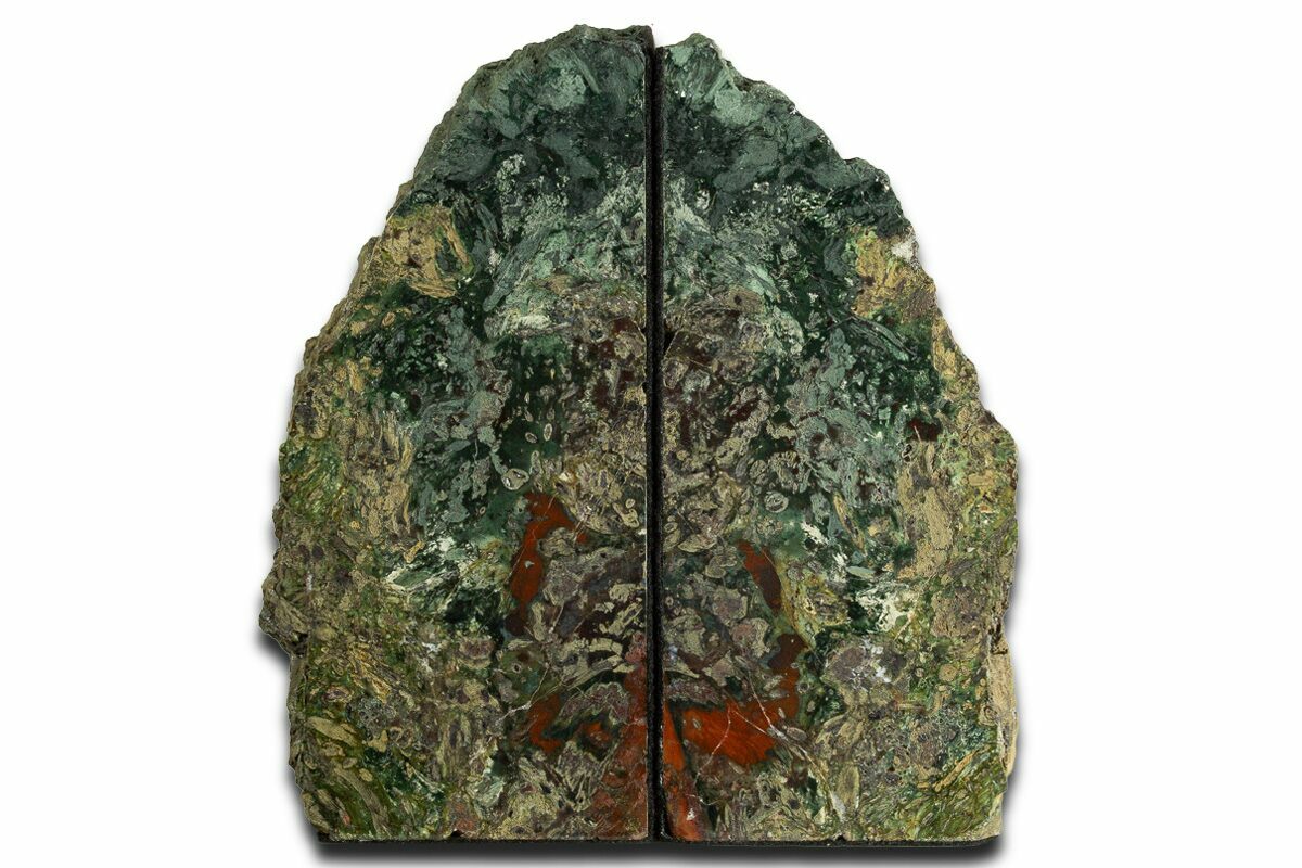 8.2" Green & Red Jasper Replaced Petrified Wood Bookends - Oregon