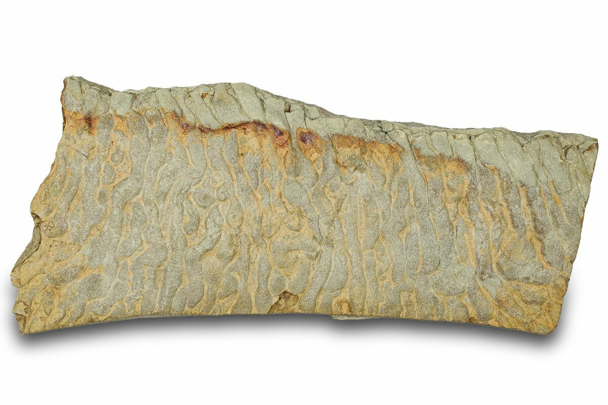 This is a 8.2" wide section of microbial "mat" from the Hartshorne Sandstone of Haskell County, Oklahoma. Also known as "MISS" (Microbially Induced Sedimentary Structures), it's the fossilized ichnofossils left behind by a colony of microbes, similar to the formation of stromatolites.