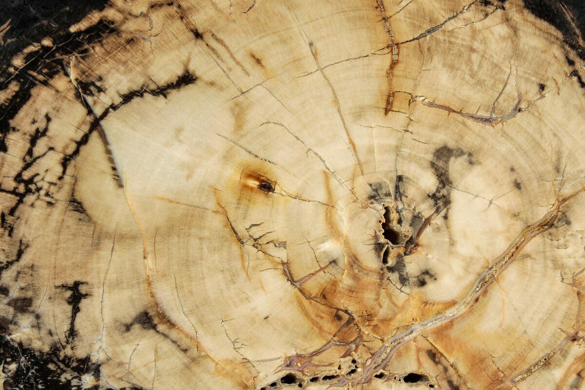 Petrified wood is the name given to wood that has been turned into stone (fossilized) through the process of permineralization. In this process, all of the organic matter becomes replaced by minerals, while much of the original structure, such as tree rings, is retained. For this to happen, the wood needs to be buried in an environment low in oxygen to prevent decomposition and with flowing, mineral-laden water, so minerals may replace structures. The coloration is caused by various minerals/impurities present in the water during fossilization. For example, red colors in many cases can be attributed to iron compounds, greens due to copper, and so on.