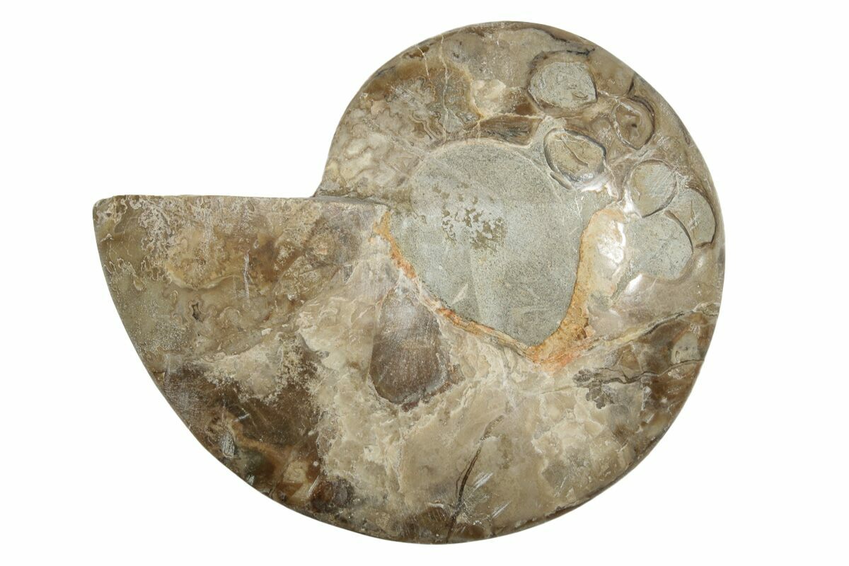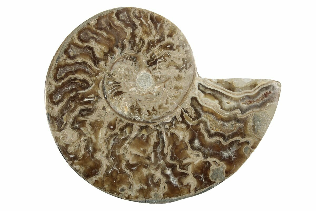 This is a stunning, 8.25" wide example of a rarely seen ammonite (Choffaticeras) from Madagascar. Ammonites of this genus are often referred to as Margarite or "Daisy" flower ammonites. It has been cut in half and polished to reveal the amazing inner detail.
