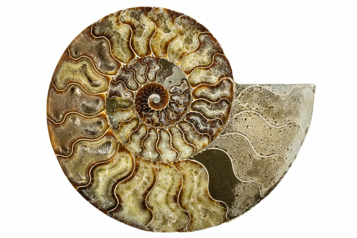 8.45" Cut & Polished Ammonite Fossil (Half) - Deep Crystal Pockets
