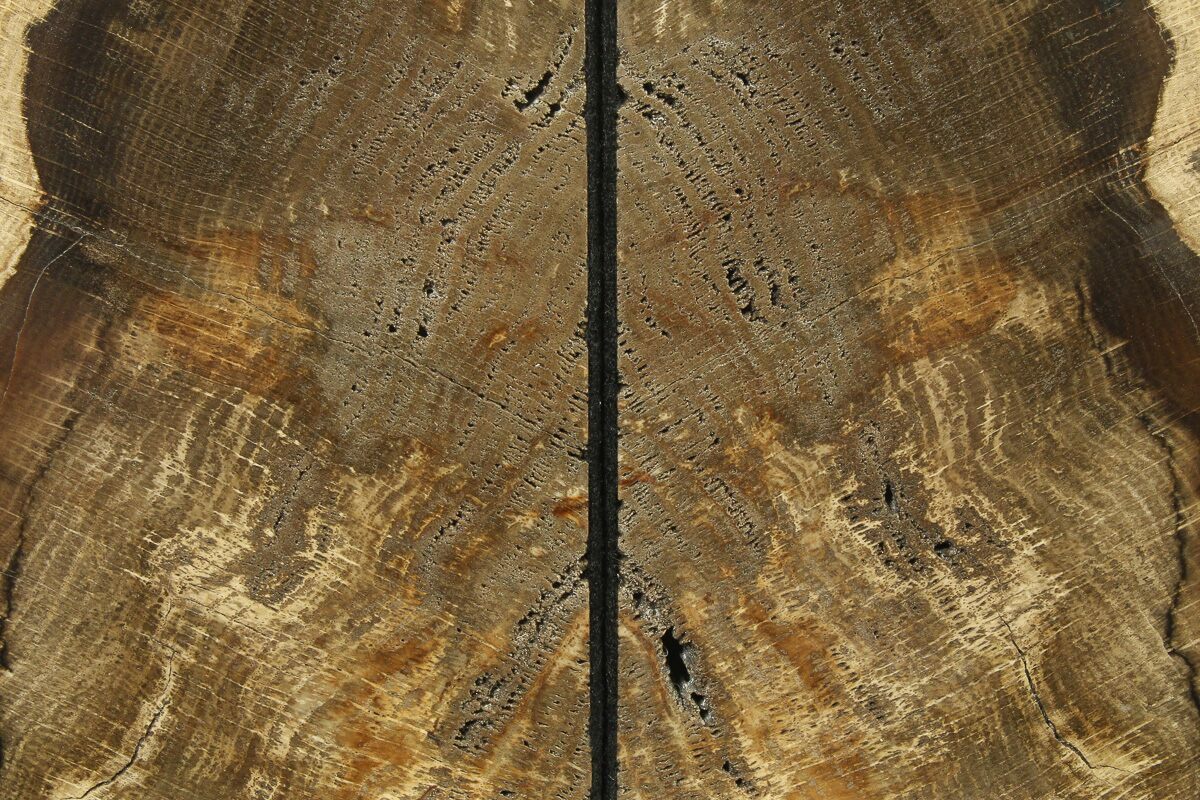 Petrified wood is the name given to wood that has been turned into stone (fossilized) through the process of permineralization. In this process, all of the organic matter becomes replaced by minerals, while much of the original structure, such as tree rings, is retained. For this to happen, the wood needs to be buried in an environment low in oxygen to prevent decomposition and with flowing, mineral-laden water, so minerals may replace structures. The coloration is caused by various minerals/impurities present in the water during fossilization. For example, red colors in many cases can be attributed to iron compounds, greens due to copper, and so on.