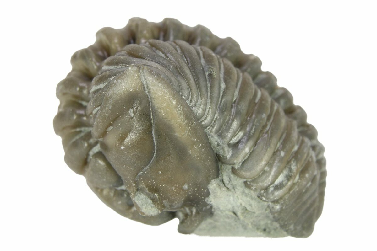 This is a curled, .8" long Flexicalymene retrorsa trilobite from Oldenburg, Indiana. It was prepared under microscope using air abrasives to reveal the beautiful shell detail of this 450 million old trilobite fossil.
