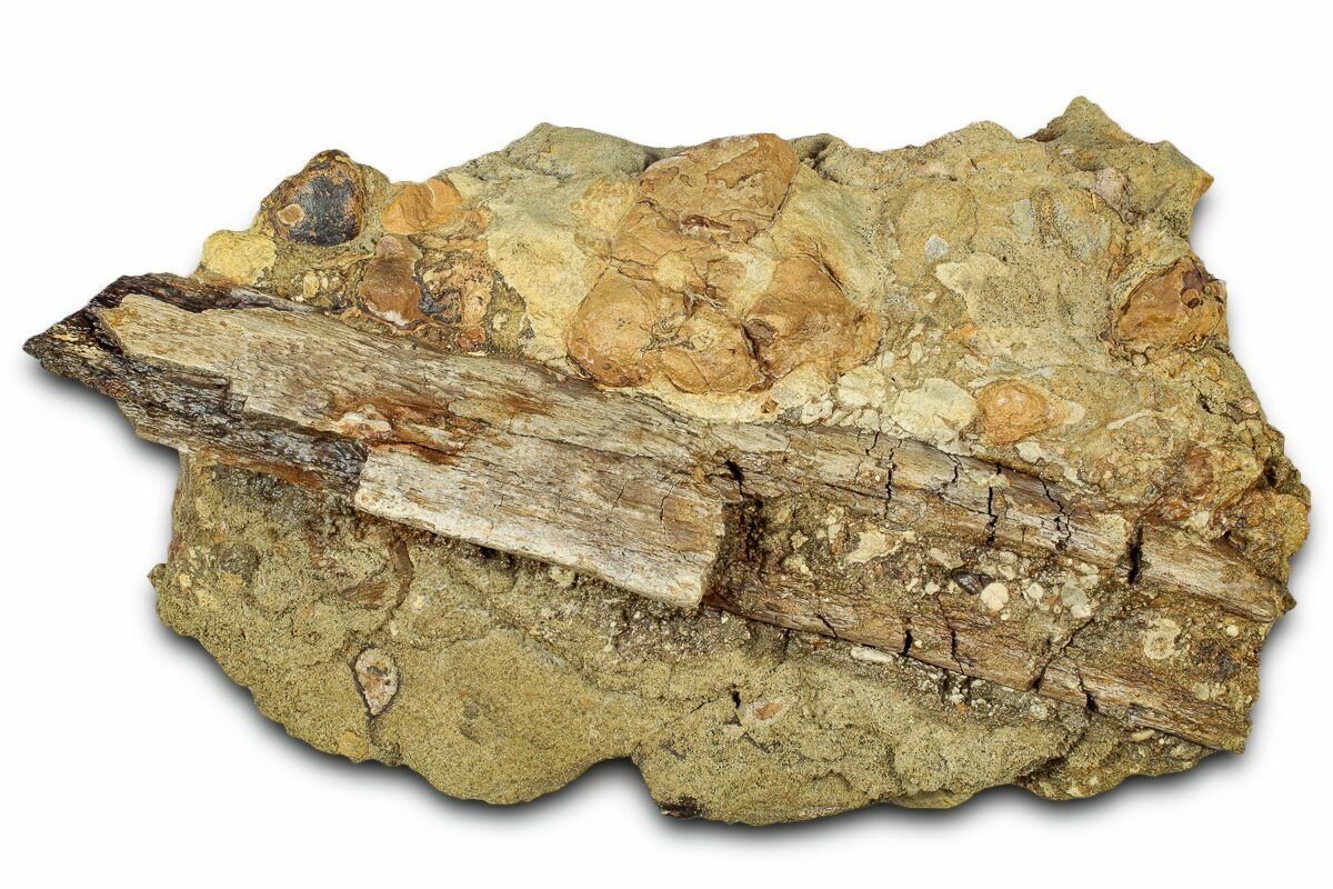 8" Fossil Dinosaur Bone in Sandstone - Wyoming
