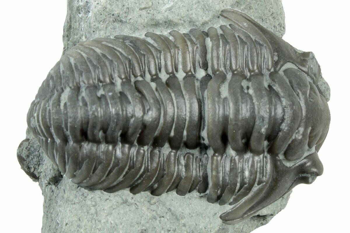 Flexicalymene is a genus of trilobites of the order Phacopida, suborder Calymenina. These ancient arthropods are an index fossil of the Ordovician, between 488-443 million years ago. The graceful articulation, especially of the thorax segments, demonstrates that this distant precursor of insects is deserving of its delightful name.