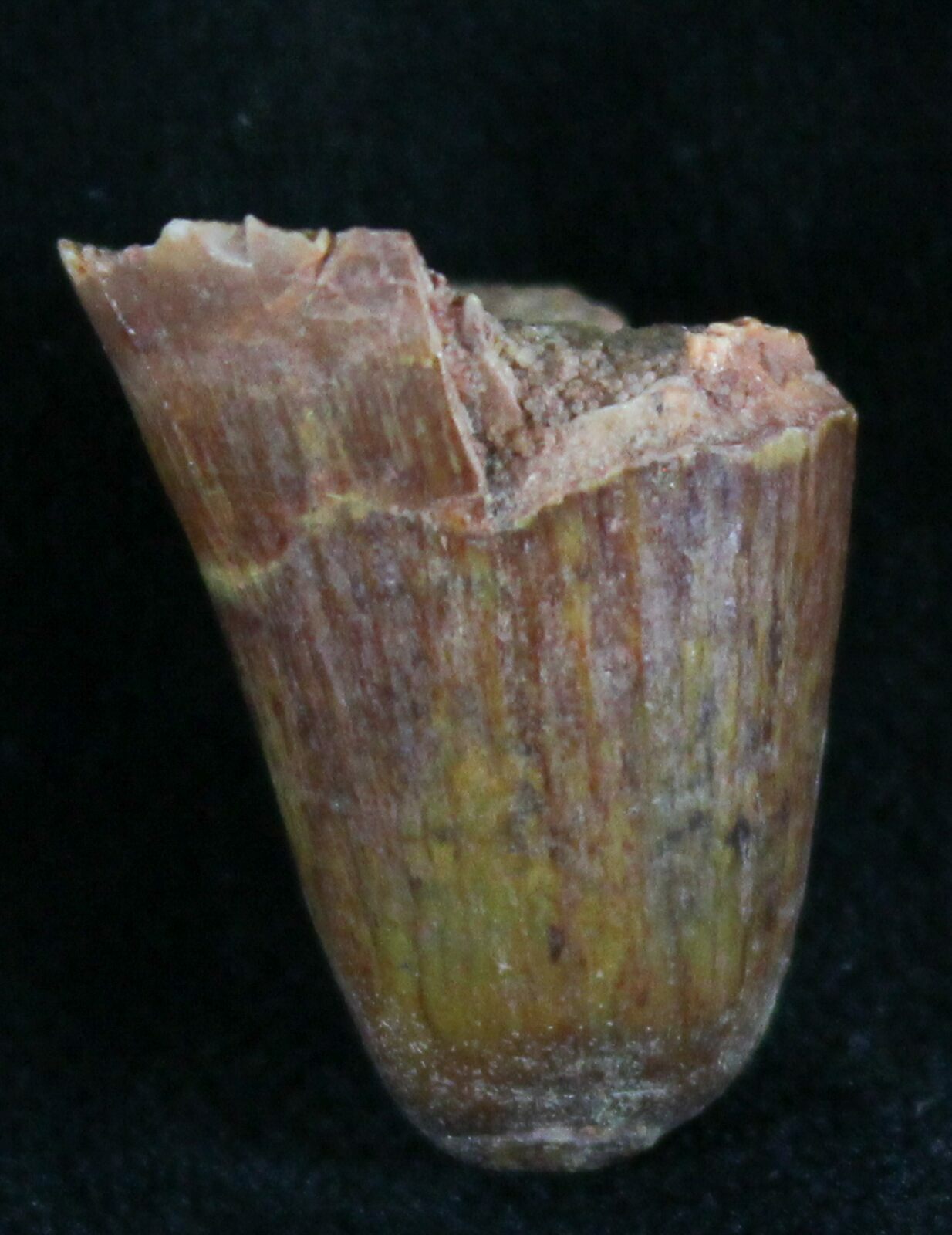 This is a Cretaceous aged fossil crocodile tooth from the Kem Kem Beds of Morocco.