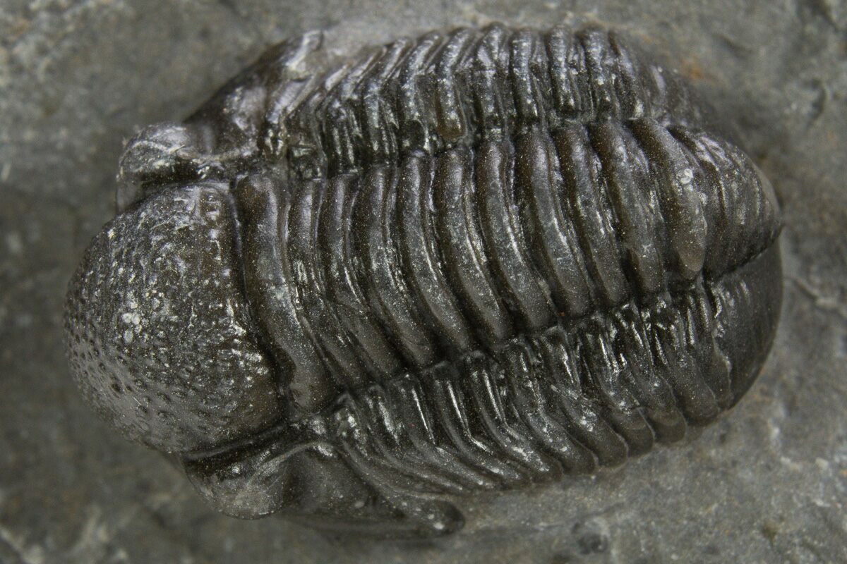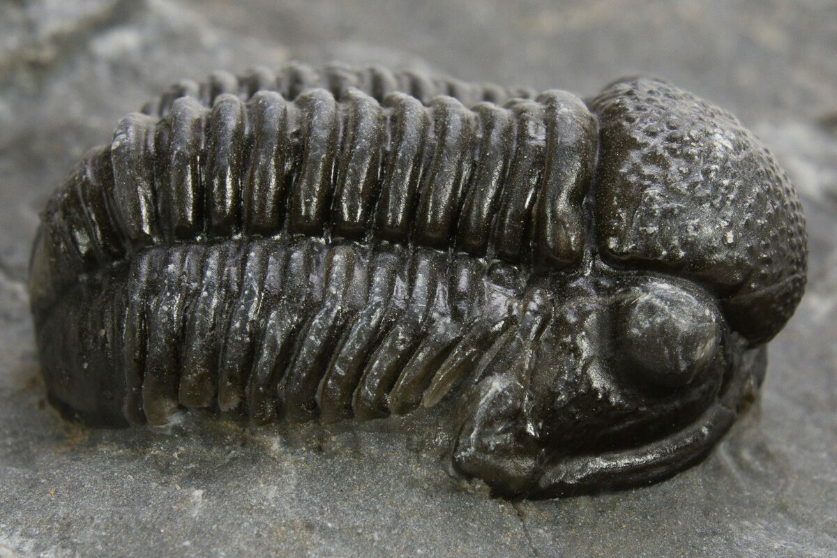 1This is a detailed, .85" long specimen of the proetid trilobite, Gerastos, collected from Issoumour, Morocco.