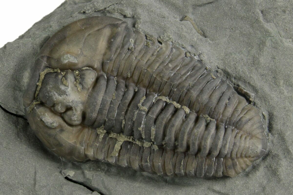 Flexicalymene is often found enrolled, seemingly to protect its softer underside from threats on a sea floor teeming with ancient life and increasingly complex predators. Sealing itself inside the hard carapace may be a protective maneuver, or it may simply be the pose of death.
