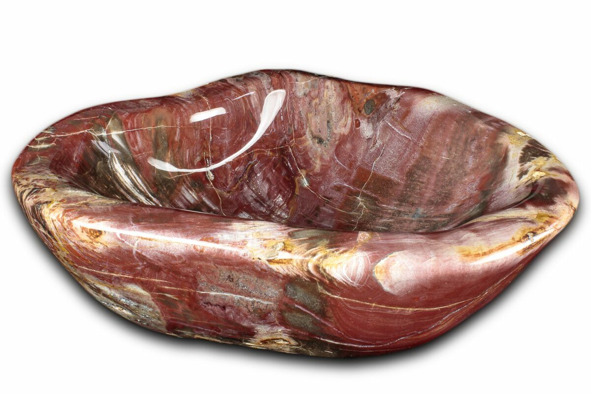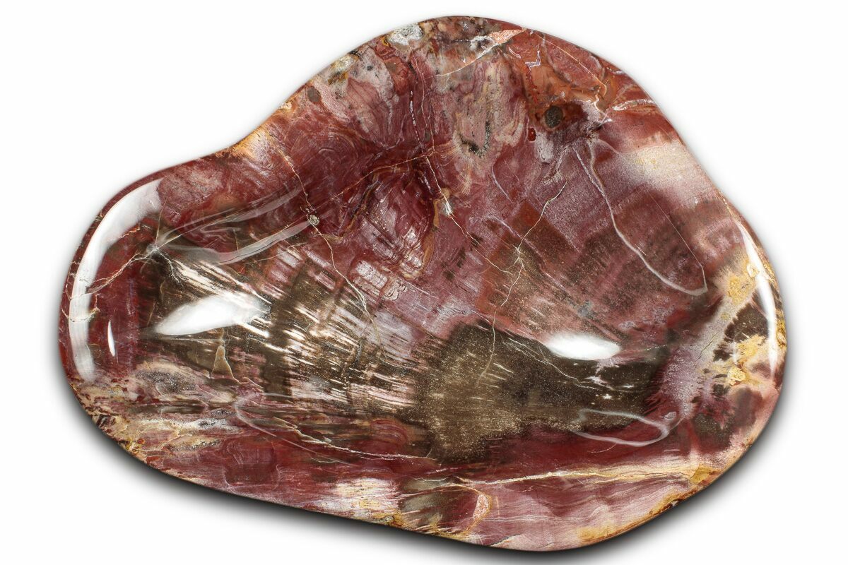 This is a beautiful 9.1" wide bowl carved from a single log of petrified Araucaria wood collected near Ambilobe, Madagascar. Dating to the Early Triassic—about 220 million years ago, near the dawn of the dinosaurs—this richly colored piece makes a striking natural centerpiece.
