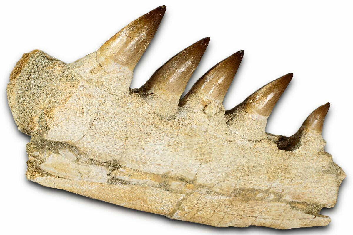 9.1" Fossil Mosasaur (Prognathodon) Jaw with Five Teeth - Morocco