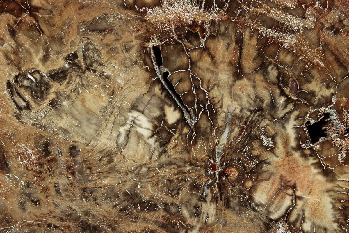 Madagascar petrified wood comes primarily from extensive Triassic-aged deposits in the Mahajanga Basin of northwestern Madagascar, where ancient conifer forests—often attributed to species related to Araucarioxylon—were buried by volcanic ash and floodplain sediments roughly 225–240 million years ago. Over immense spans of time, silica-rich fluids percolated through these sediments, replacing the cellular structure of the wood with chalcedony, jasper, agate, and quartz while preserving growth rings, bark textures, and even microscopic details. The region’s unique geochemistry—especially its iron, manganese, and occasionally copper content—produces the vivid palette Madagascar petrified wood is famous for, including deep brick reds, golden yellows, smoky blacks, and pastel pinks. Many logs are found fully silicified and naturally fractured into large, rounded segments that local artisans cut into slabs, spheres, eggs, and freeforms. These deposits stretch across arid badlands where erosion steadily exposes new material, making Madagascar one of the world’s premier sources of highly colorful, beautifully patterned fossil wood.