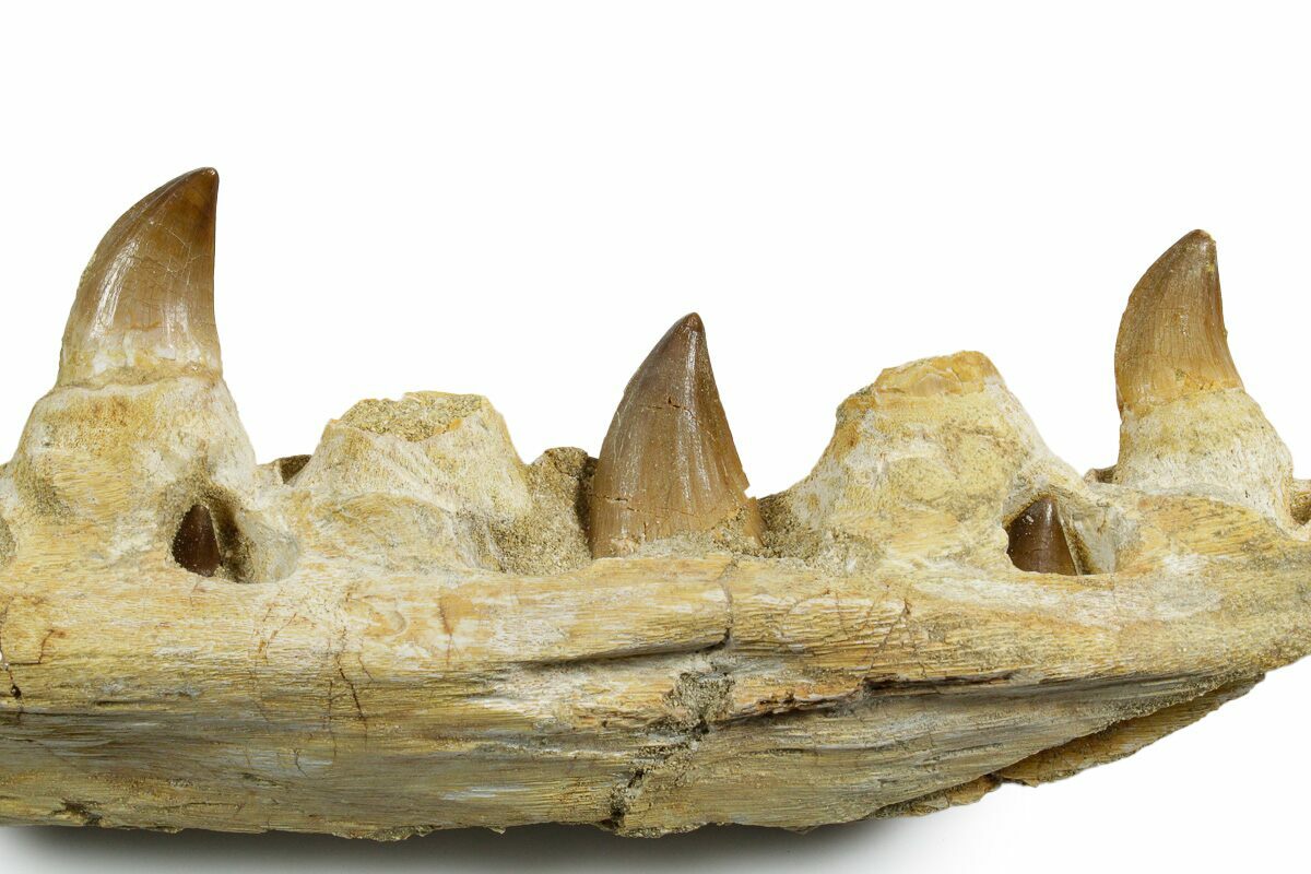 9.35" Fossil Mosasaur Jaw Section with Teeth - Morocco