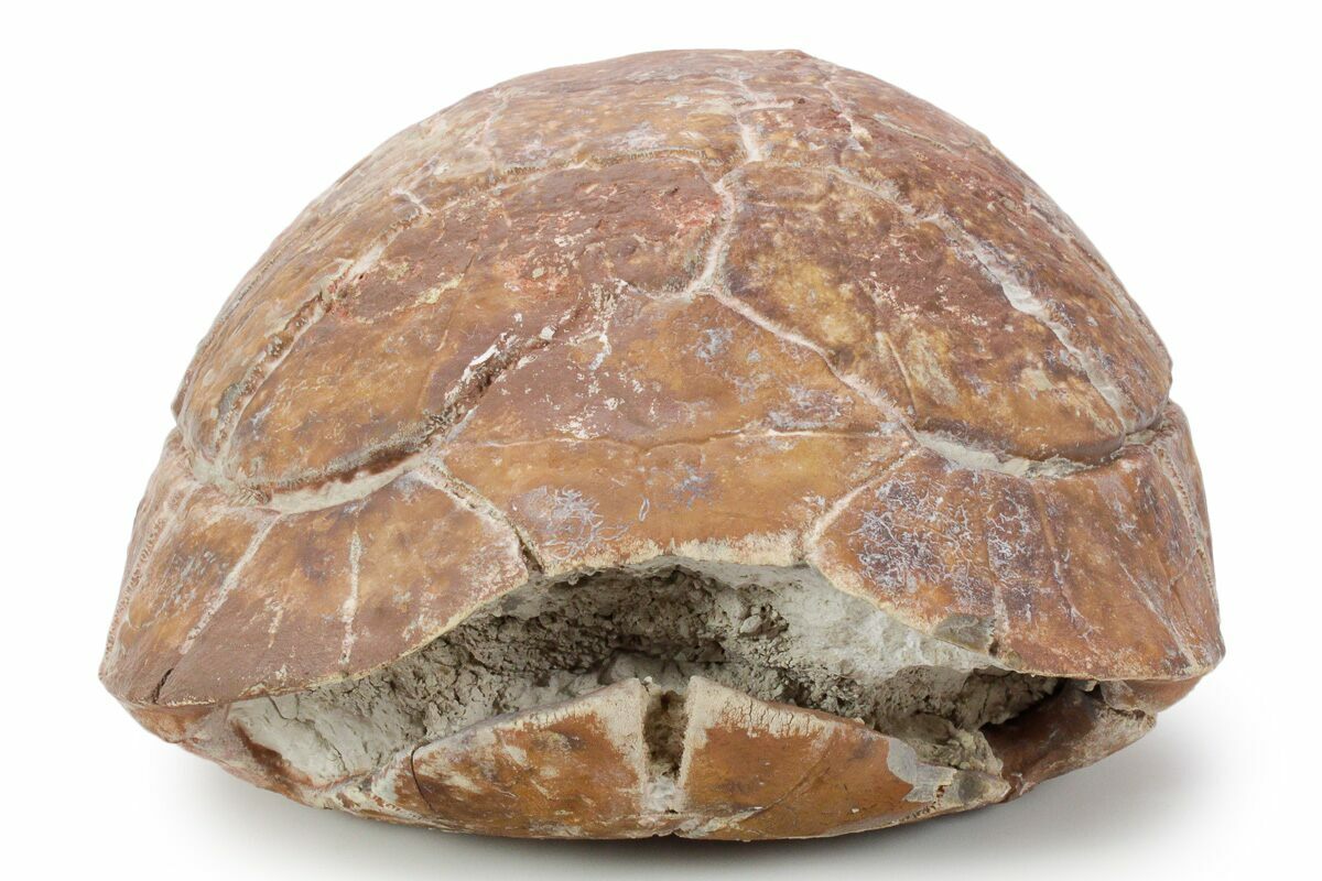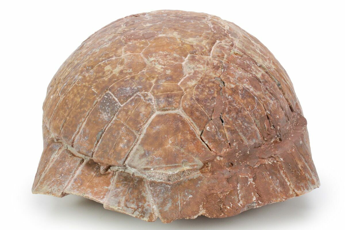 This is a gorgeous, 9.4" long shell (carapace and plastron) of an Oligocene-aged tortoise (Stylemys nebrascensis) from the White River Formation in the Badlands of South Dakota. It is nicely inflated with minimal crushing and gorgeous red-orange preservation.