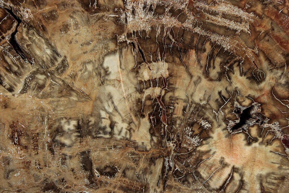 Madagascar petrified wood comes primarily from extensive Triassic-aged deposits in the Mahajanga Basin of northwestern Madagascar, where ancient conifer forests—often attributed to species related to Araucarioxylon—were buried by volcanic ash and floodplain sediments roughly 225–240 million years ago. Over immense spans of time, silica-rich fluids percolated through these sediments, replacing the cellular structure of the wood with chalcedony, jasper, agate, and quartz while preserving growth rings, bark textures, and even microscopic details. The region’s unique geochemistry—especially its iron, manganese, and occasionally copper content—produces the vivid palette Madagascar petrified wood is famous for, including deep brick reds, golden yellows, smoky blacks, and pastel pinks. Many logs are found fully silicified and naturally fractured into large, rounded segments that local artisans cut into slabs, spheres, eggs, and freeforms. These deposits stretch across arid badlands where erosion steadily exposes new material, making Madagascar one of the world’s premier sources of highly colorful, beautifully patterned fossil wood.