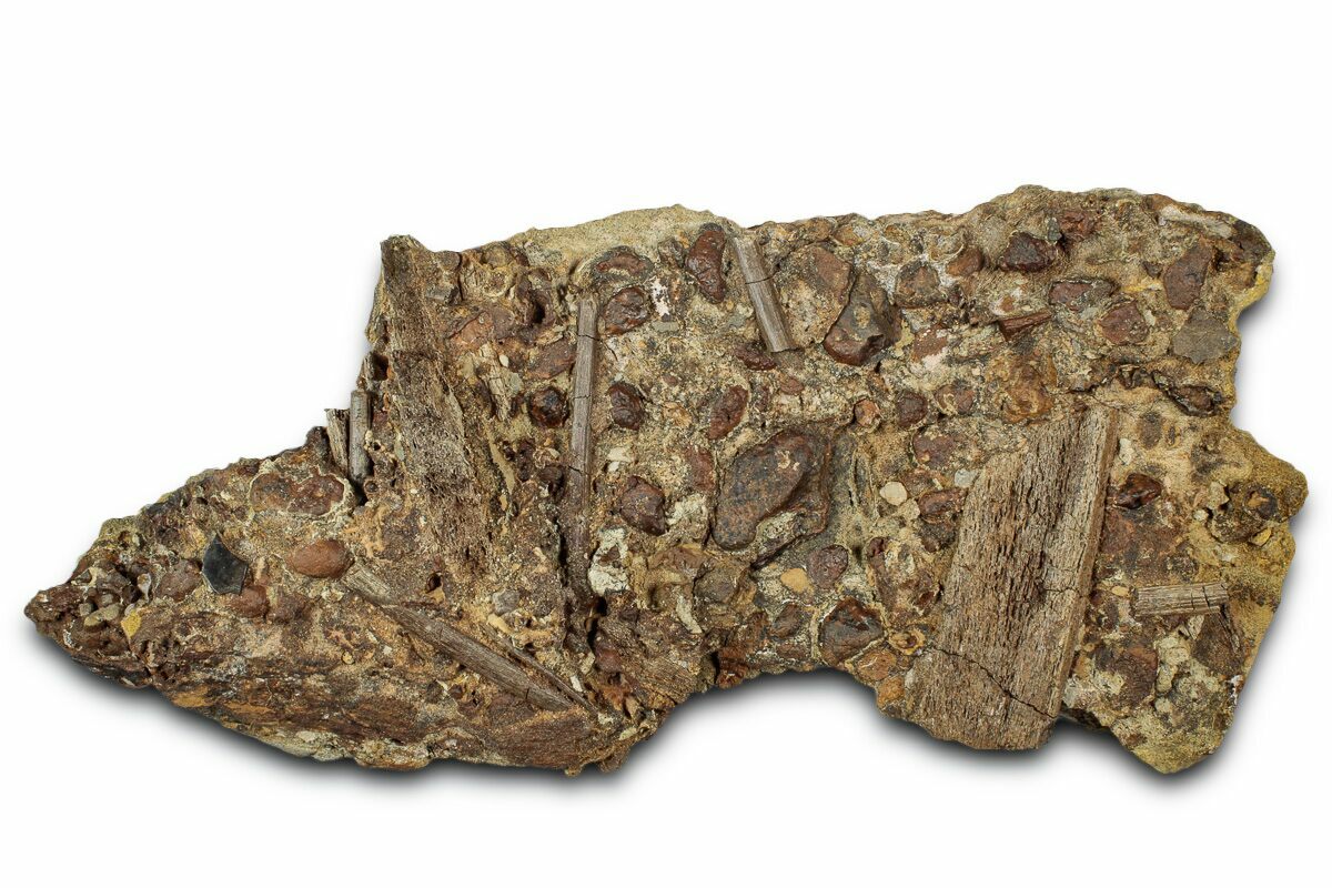 9.5" Dinosaur Tendons, Bones, and Gar Scale in Sandstone - Wyoming