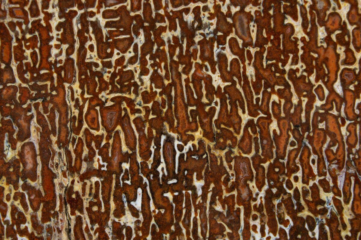 Dinosaur gembone (agatized dinosaur bone) forms when the porous structure of dinosaur bone is replaced by silica-rich minerals like agate, chalcedony, or jasper. This preserves the bone’s internal cell patterns, creating striking, web-like textures visible when polished.