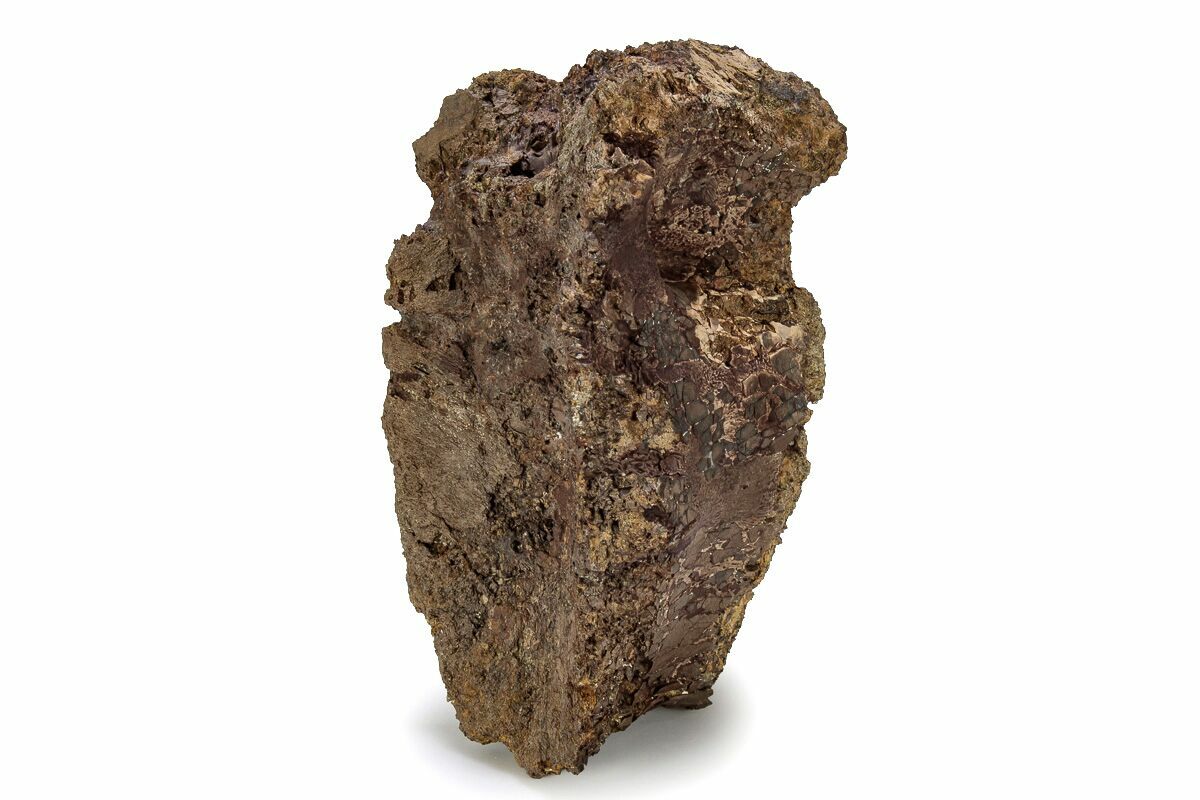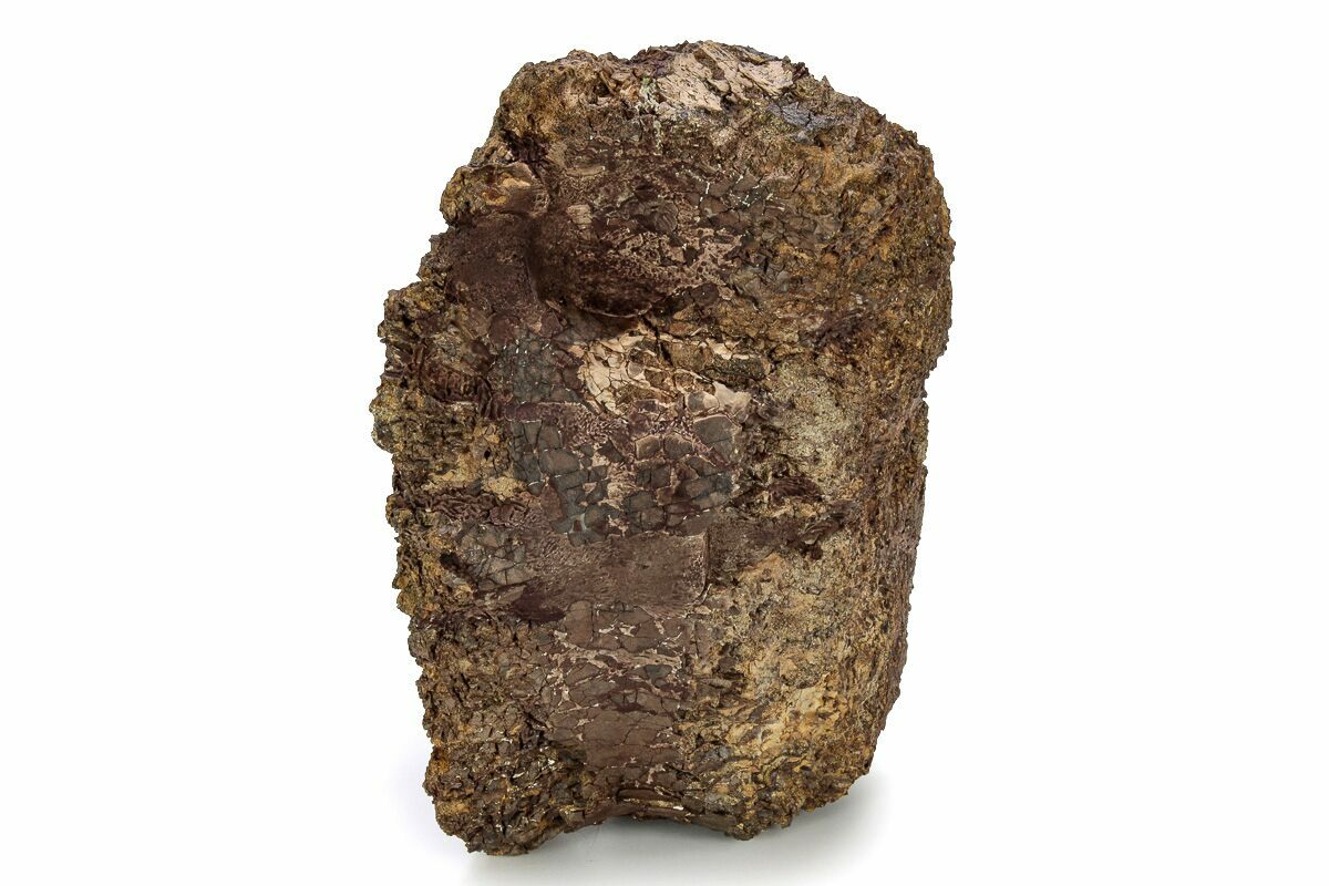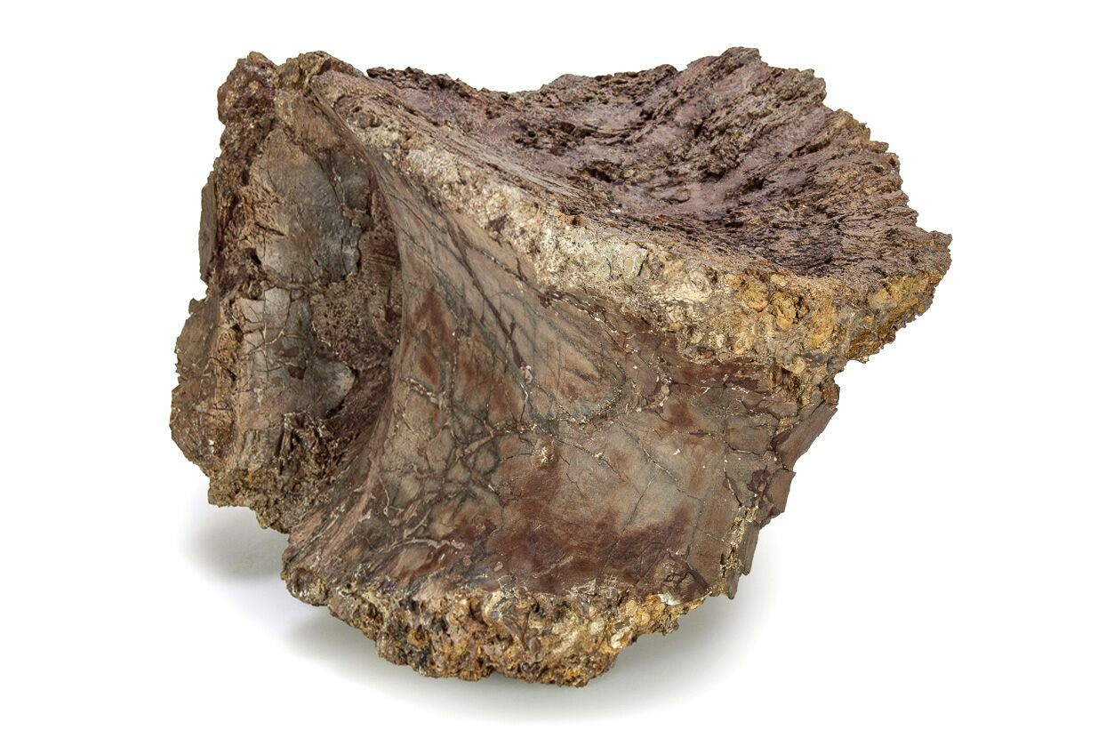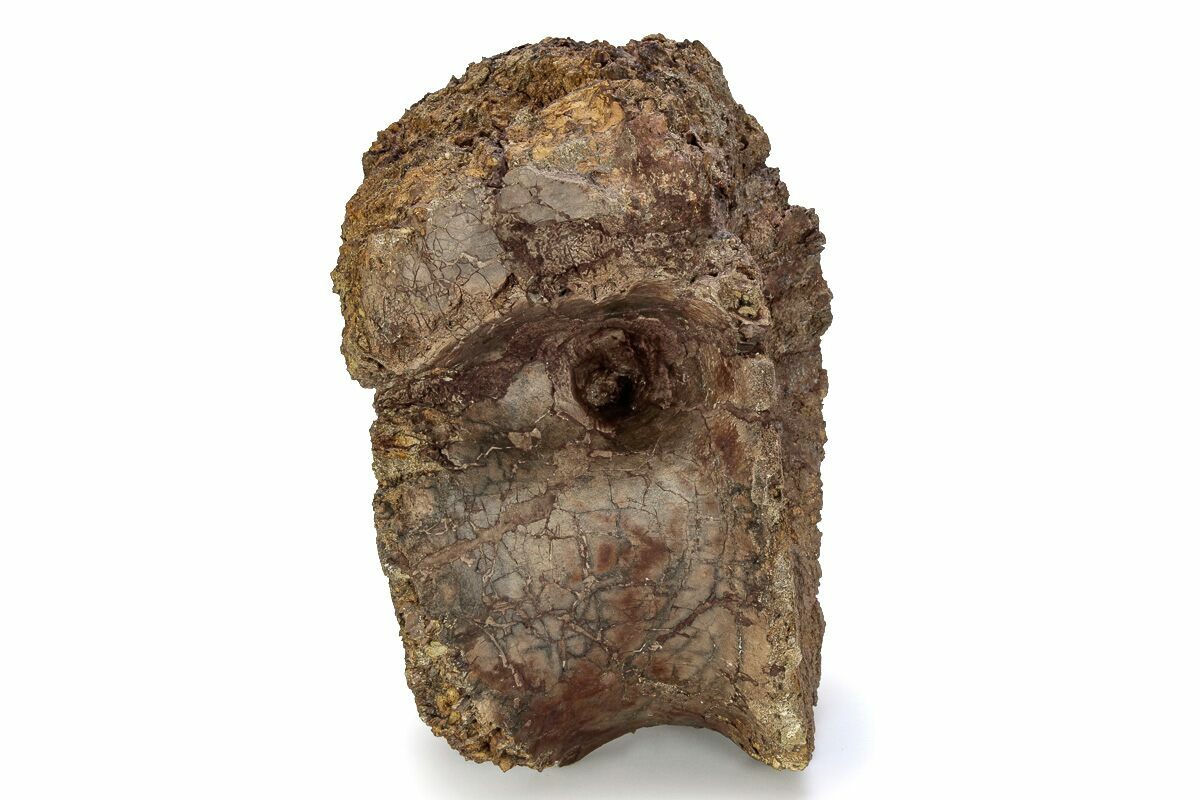 This is a 9.9" tall vertebra from Tyrannosaurus rex, collected from the Hell Creek Formation of Powderville, Montana. Beautiful cortical bone preservation can be found in spots around the periphery of the vertebra. About 20% of the centrum is missing, along with a portion of the neural canal.