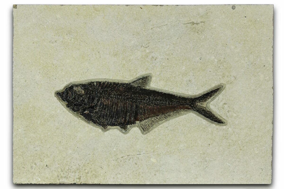 Today the wonderfully preserved fossils of Diplomystus and other Fossil Lake fauna are collected in several private quarries around Kemmerer, Wyoming. The best preserved fish fossils come from the coveted 18 Inch Layer. This layer is collected at night under high-powered lights, enhancing the faint signs of fish under the surface indicating underlying fossils. These “ghosted” fish then must go through many hours of manual preparation to remove the overlying rock and reveal the Green River fauna in all of its glory.